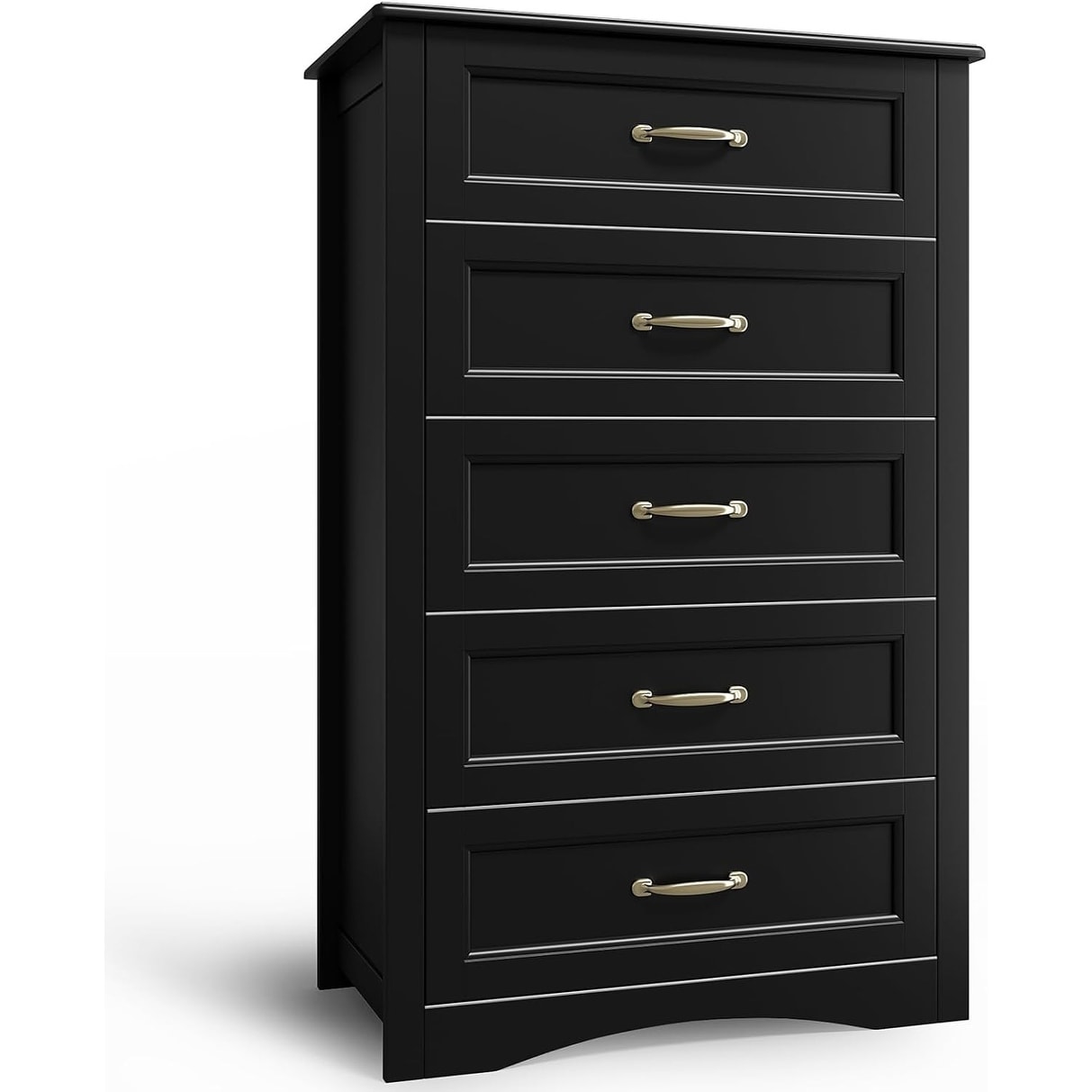 5-Drawer Black Wood Chest, 43.3 Inch Storage Cabinet with Anti-Tip Device for Bedroom, Living Room, Office