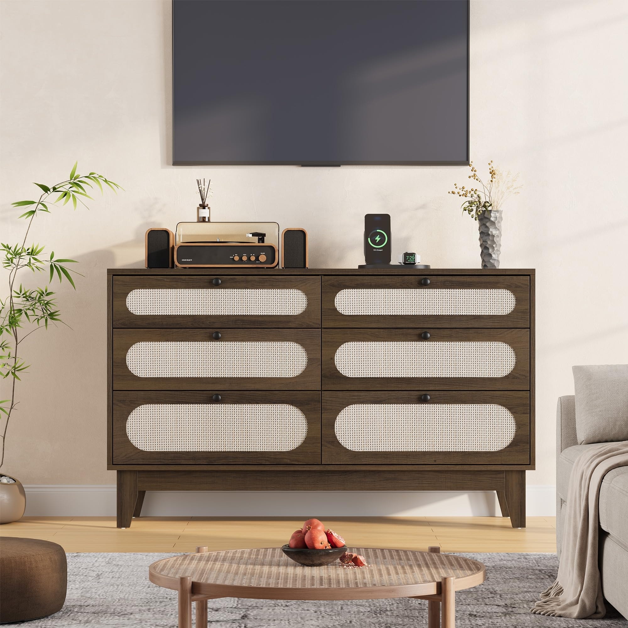 6 Rattan Drawer Dresser Modern Chest with Drawers for Bedroom