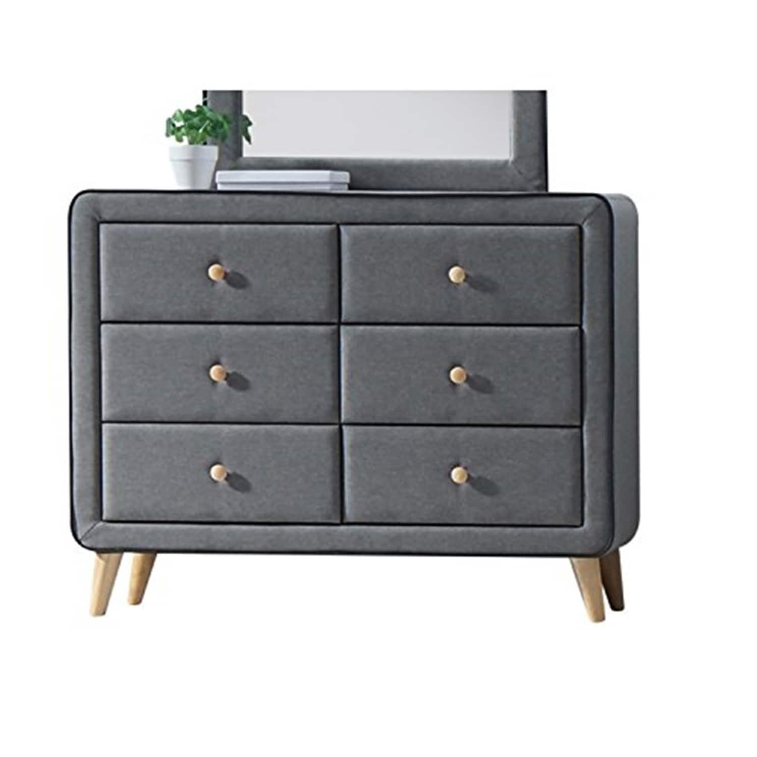 Elegant Light Gray Dresser - 6 Drawer Fabric Chest with Tapered Wood Legs