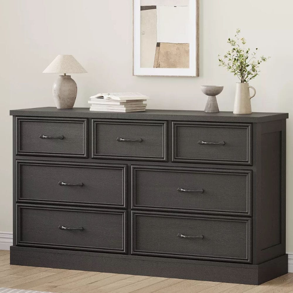 Farmhouse 7 Drawer Dresser, 55" Wide 7 Chest of Drawers Storage with Sturdy Foundation, Wooden TV Stand for Home Office