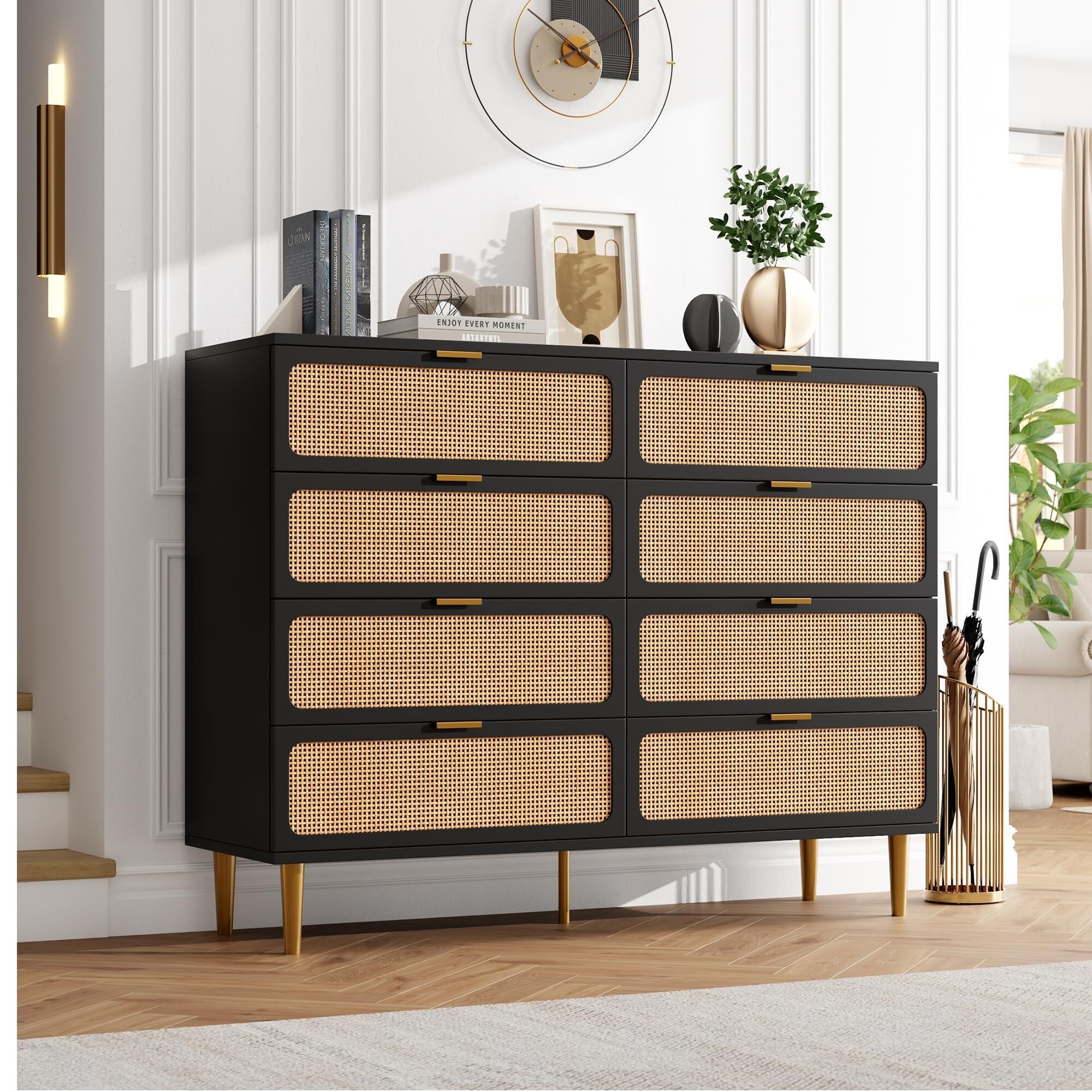 Rattan Dresser with 8 Drawers, Tall Modern Closet with Deep Storage, Large Chest of Drawers with Wide Top
