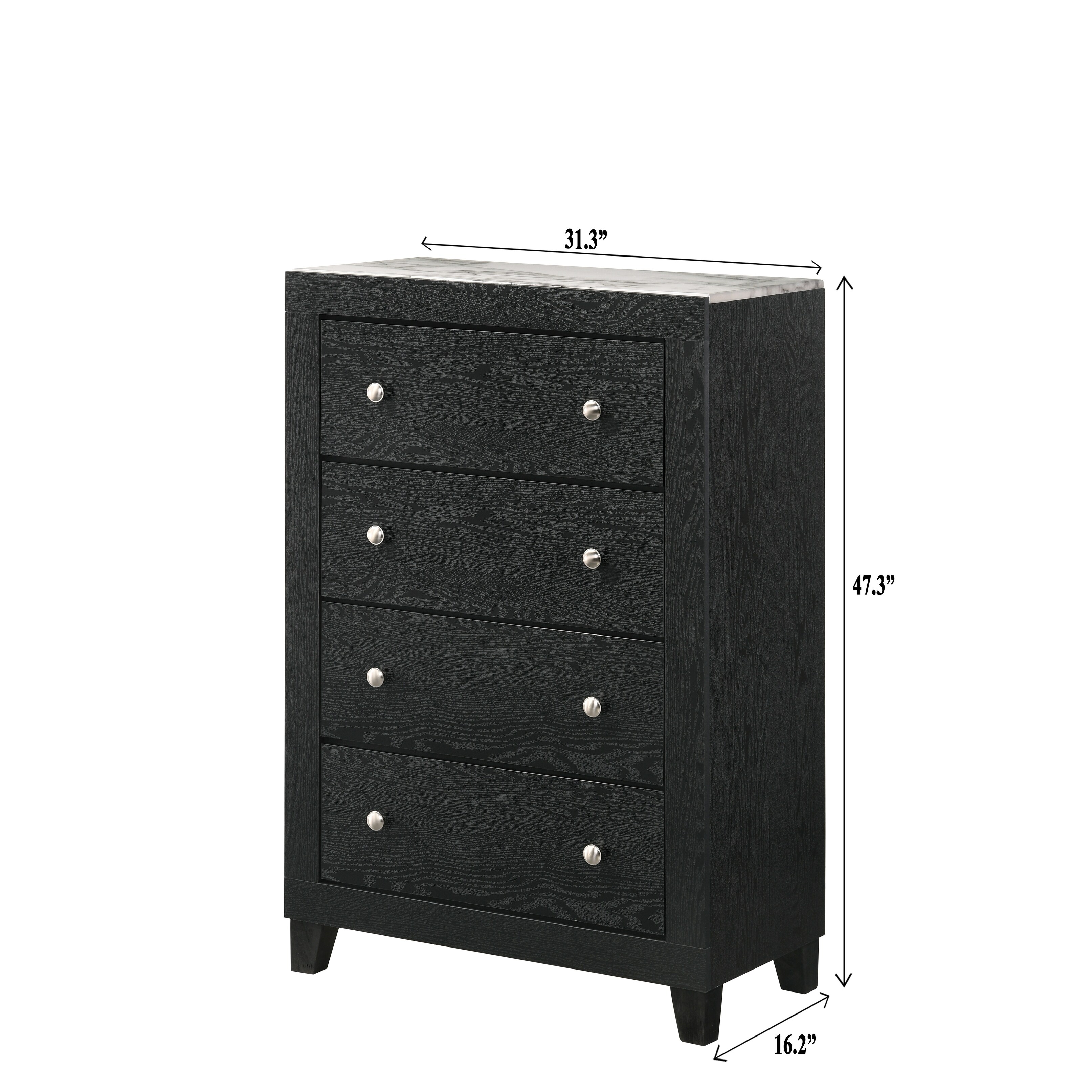 Contemporary Modern Tall Chest With 4 Drawers And Faux Marble Top