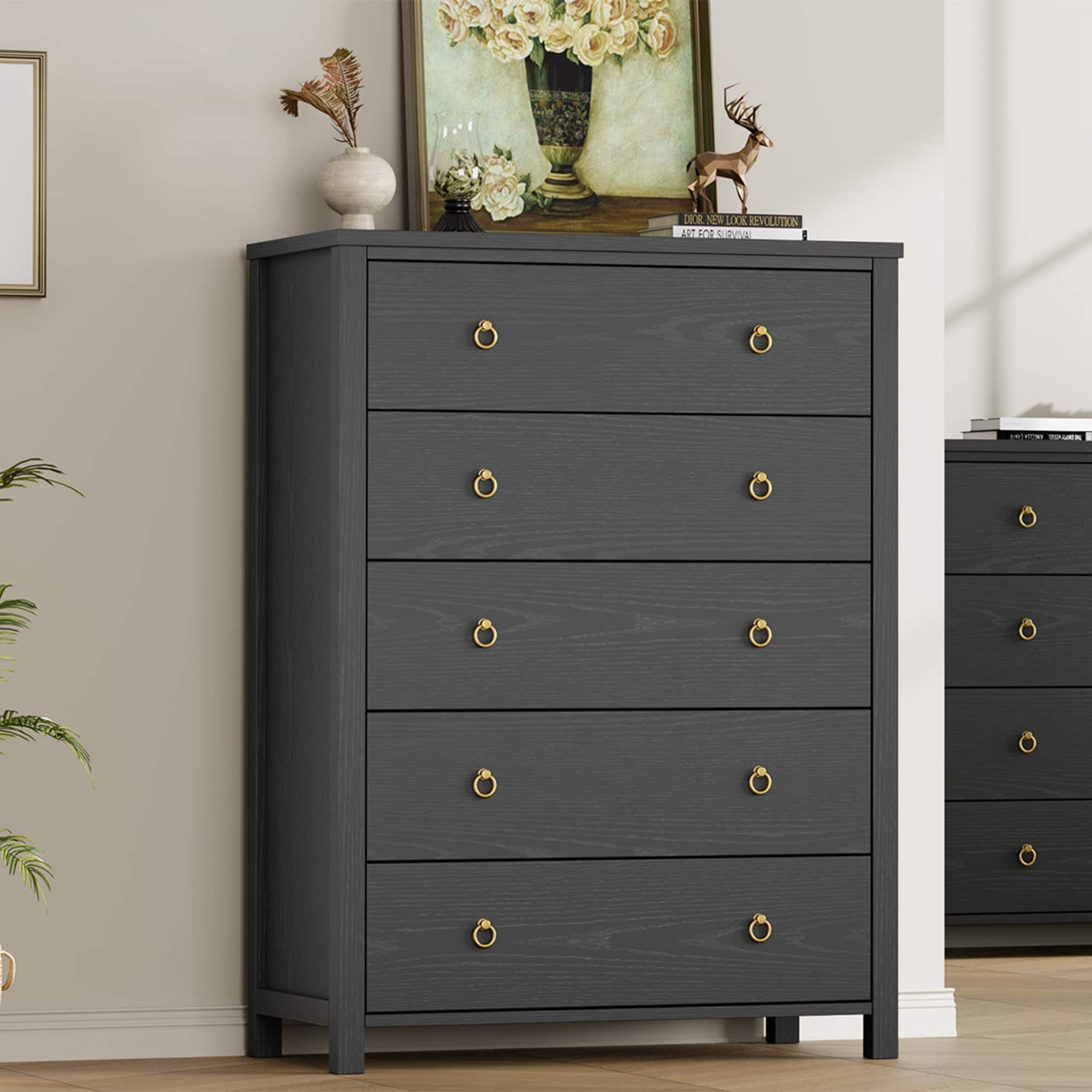 5 Dresser for Bedroom, 50" Tall Dresser, Freestanding Vertical Drawer with Storage, Wooden Closet Chest Storage