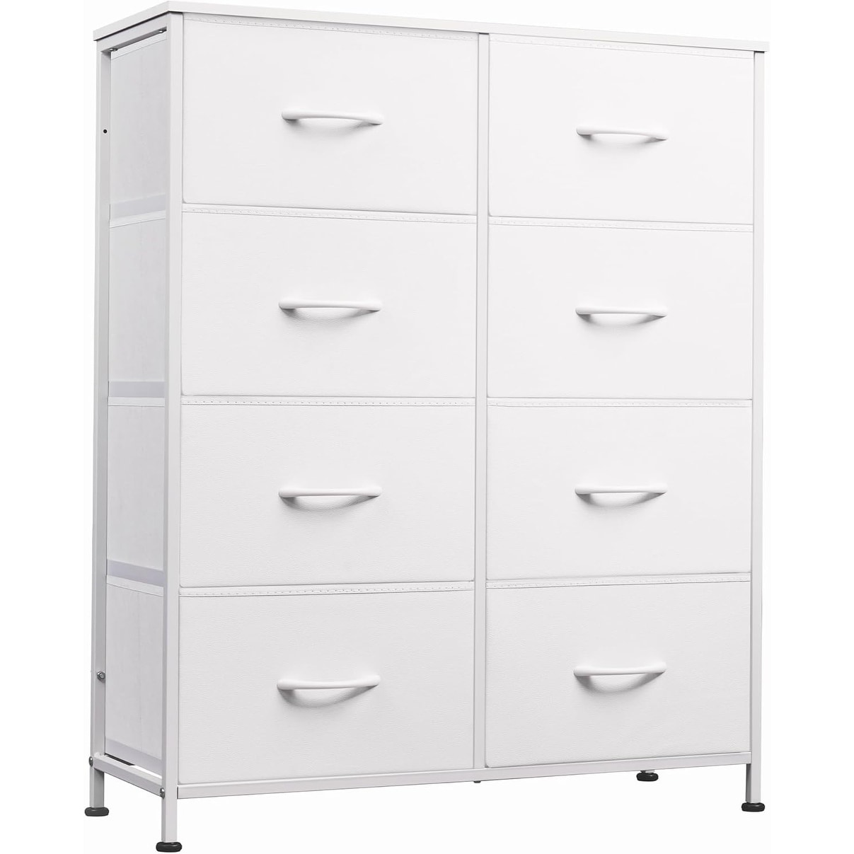 Tall 8-Drawer Fabric Dresser with Storage Bins, White - Versatile Organizer for Bedroom, Closet, or Dorm