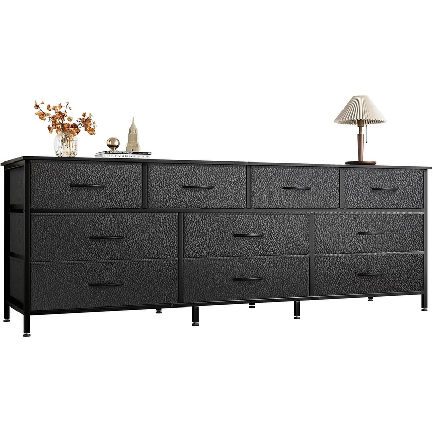 63 Inch Fabric Drawer Dresser with Wood Top, 10 Drawers for Bedroom, TV Stand for 55-70 Inch TVs, Toy Organizer, Black
