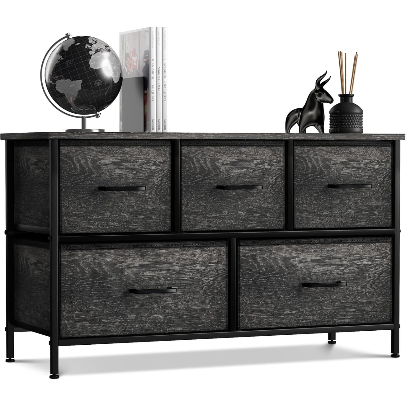 5-Drawer Storage Dresser with Wood Top and Fabric Bins for Bedroom, Living Room, or Closet