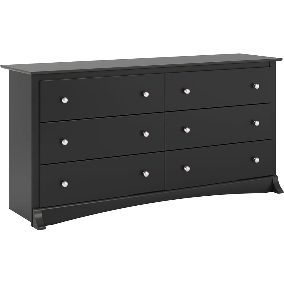 Modern 6-Drawer Double Dresser for Bedroom, Wide Chest Storage, Traditional Furniture, Black