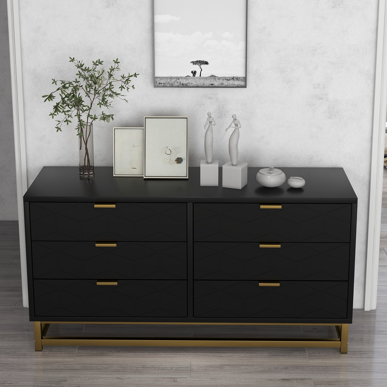 Black Dresser for Bedroom with 6 Drawers, Wood Chest of Drawers, TV Stand, Morden Dresser for Closet