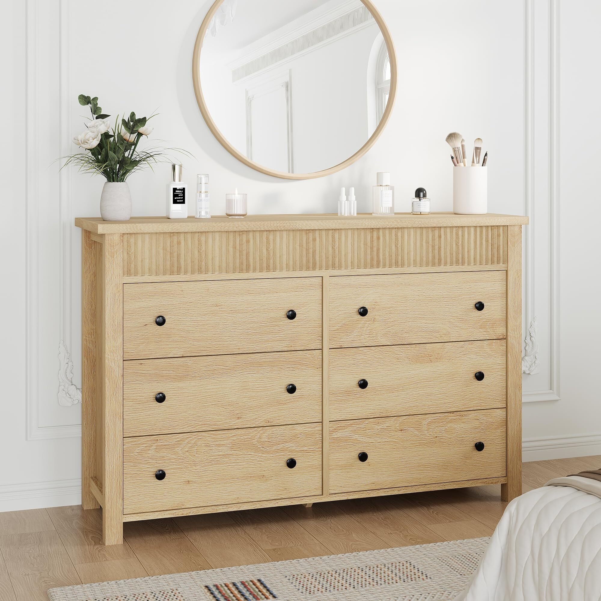 6/7 Drawer Dresser for Bedroom, Wooden Chest of Drawers, Fluted TV Stand