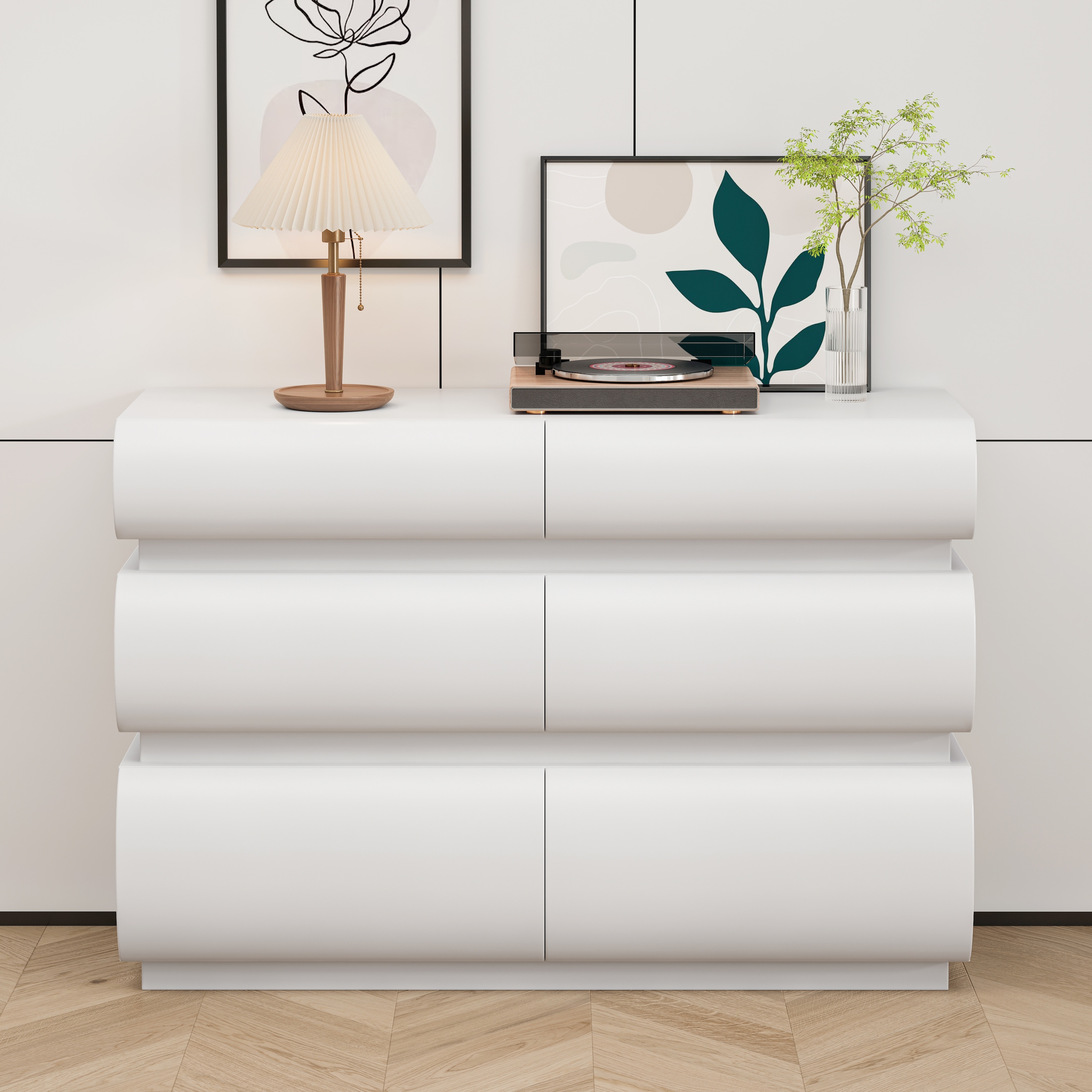 White 6 Drawers Dresser for Bedroom TV Stand with Power Outlets and LED Light
