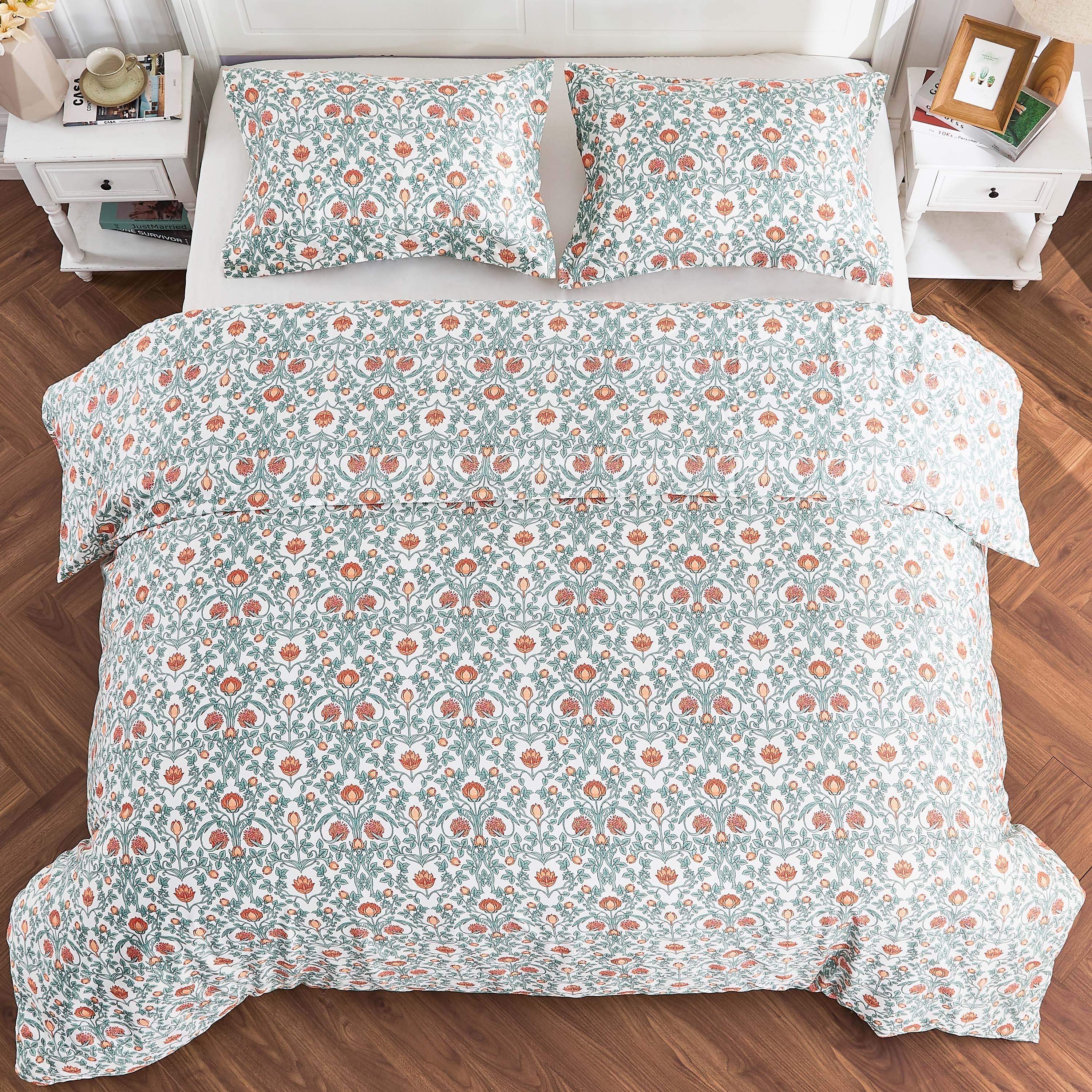 Printed Design Cotton Collection Orange Floral Crafted Duvet Set