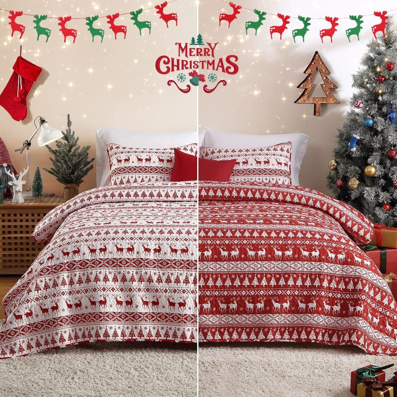 Reversible Bedspread Christmas Duvet Cover and Pillow Shams Set, Bedding Set
