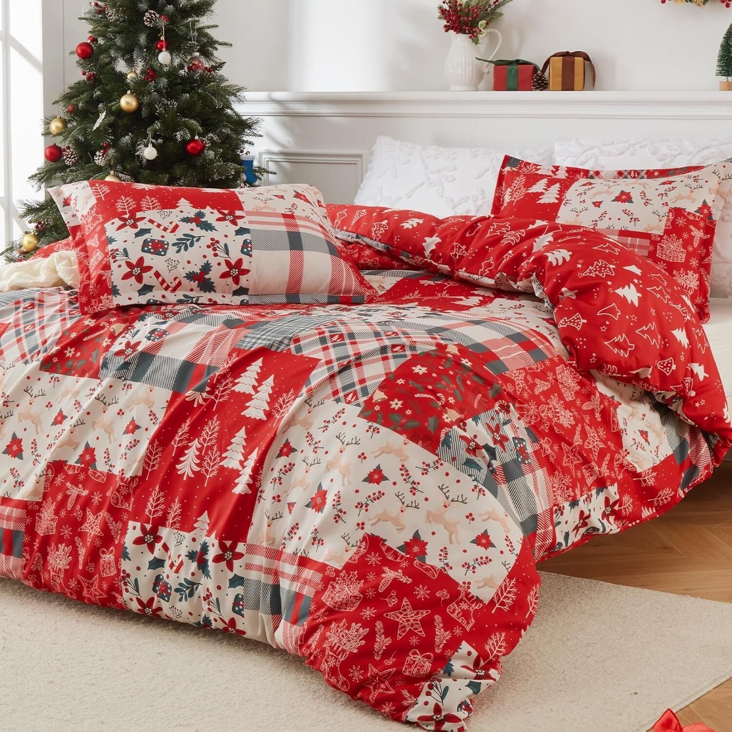 Christmas Holiday Patchwork Duvet Cover and Pillow Shams Set, Bedding Set