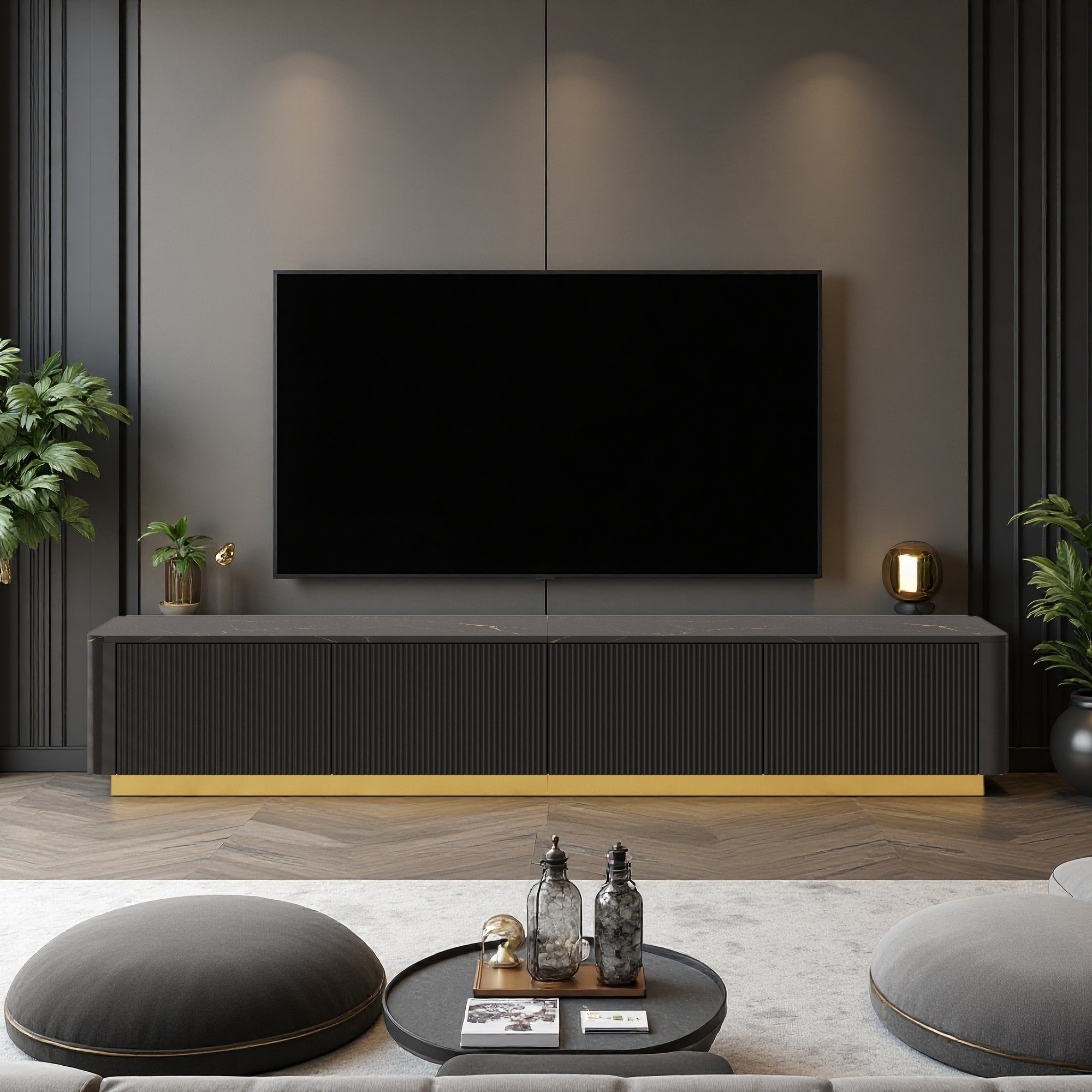 78.7" TV Stand with 4-Drawer and Gold Base, Modern Luxury Aesthetic for Living Room or Entryway