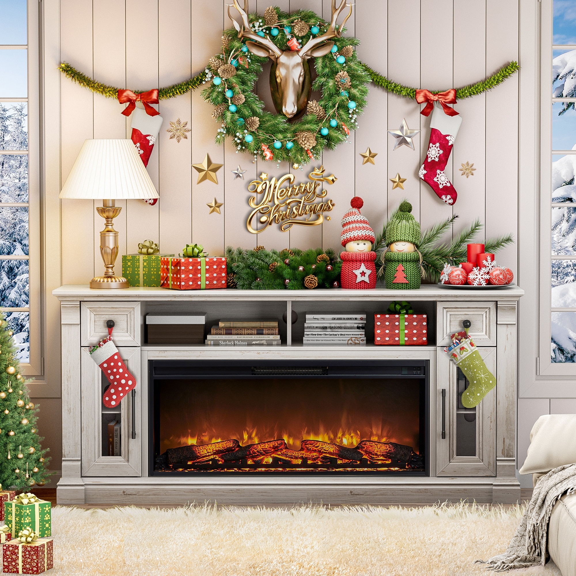 Fireplace TV Stand for 80" TV, Entertainment Center with LED Lights