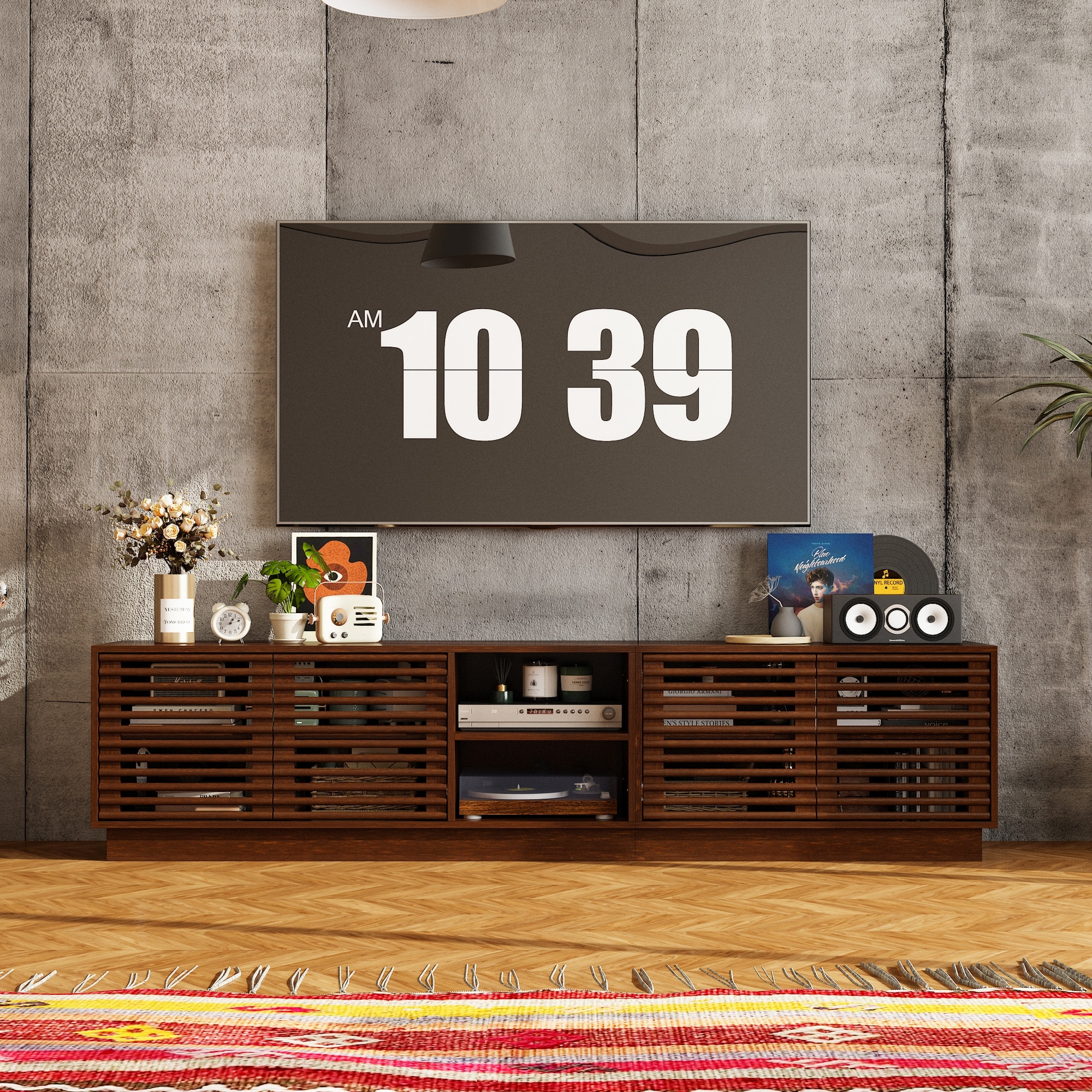 Retro - inspired Slatted TV Stand Entertainment Center: Rustic Charm, Ample Storage & Functional Design