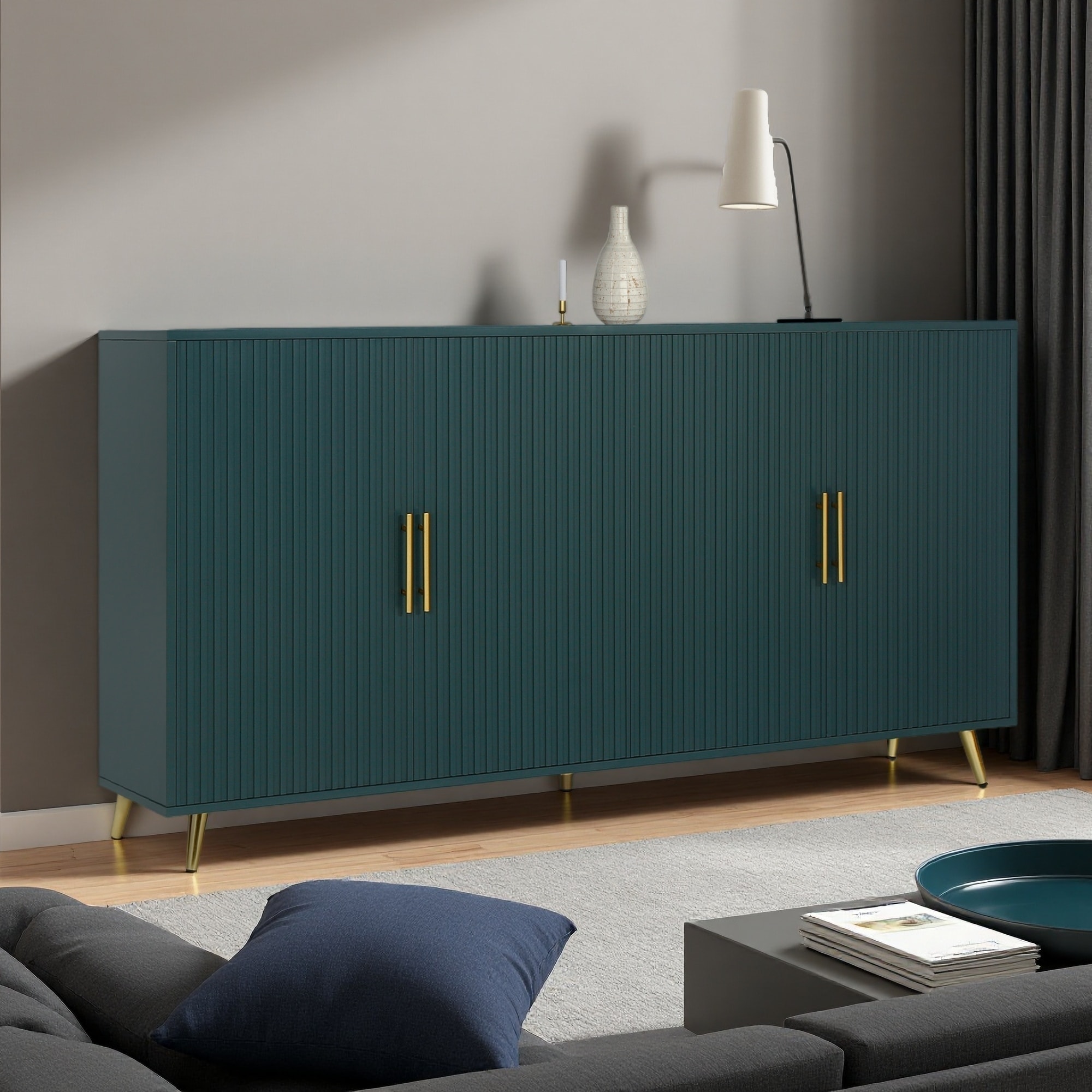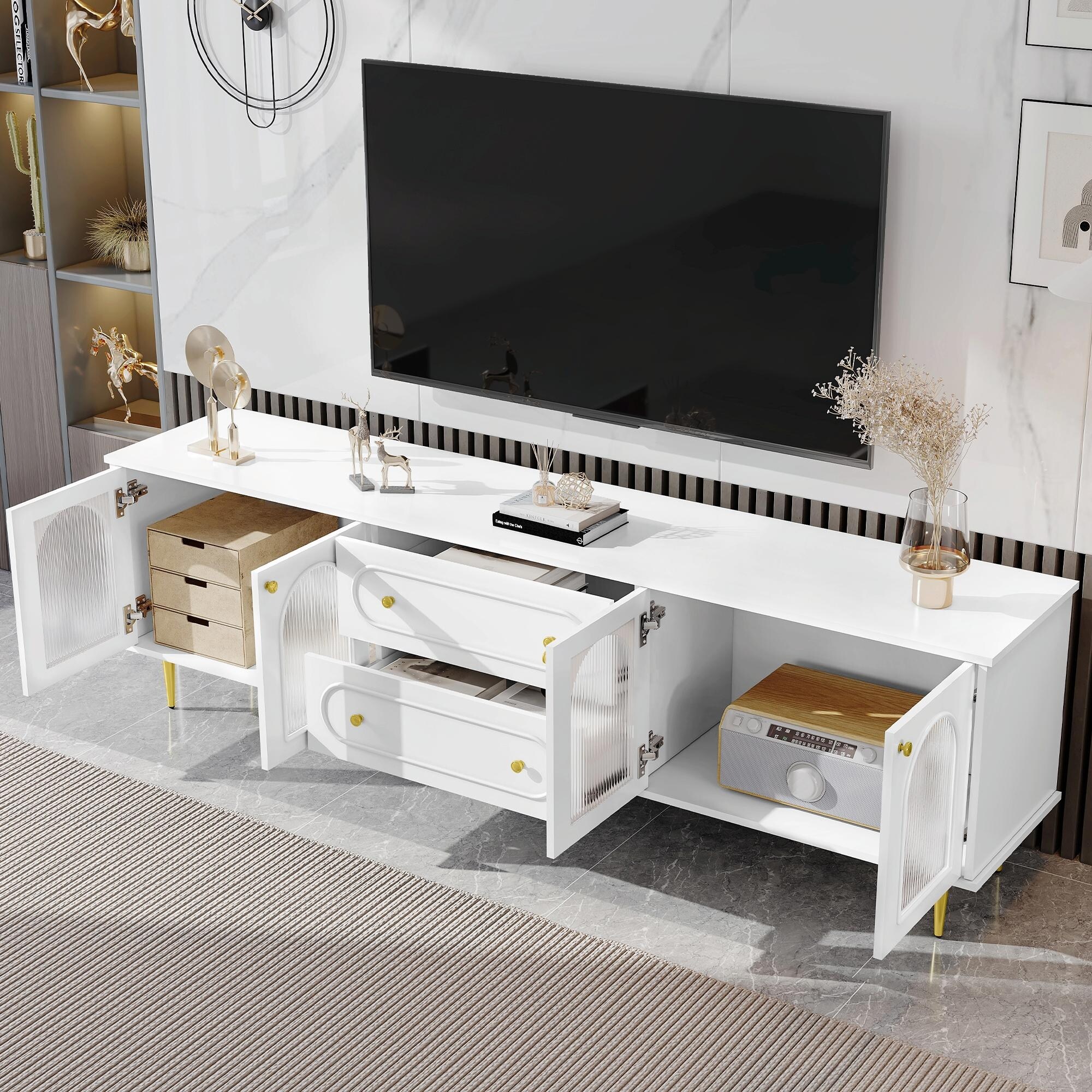 Modern 78.7'' TV Stand with Five Metal Legs, Fluted Glass Cabinets, and 2 Drawers