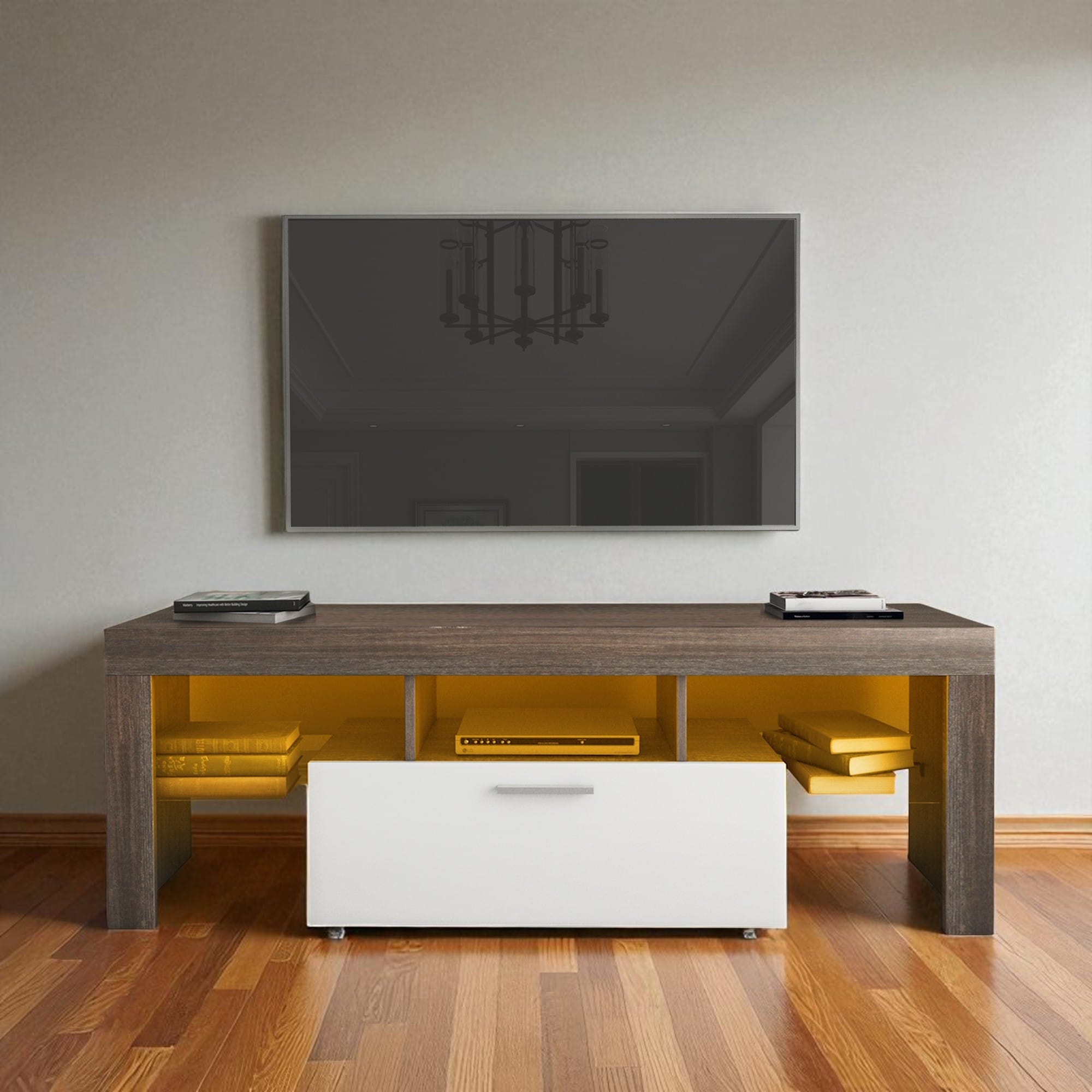 Modern TV Stand for TVs up to 55 Inches, Entertainment Center Media Console,Adjustable Shelf Handles and Anti-tip Device