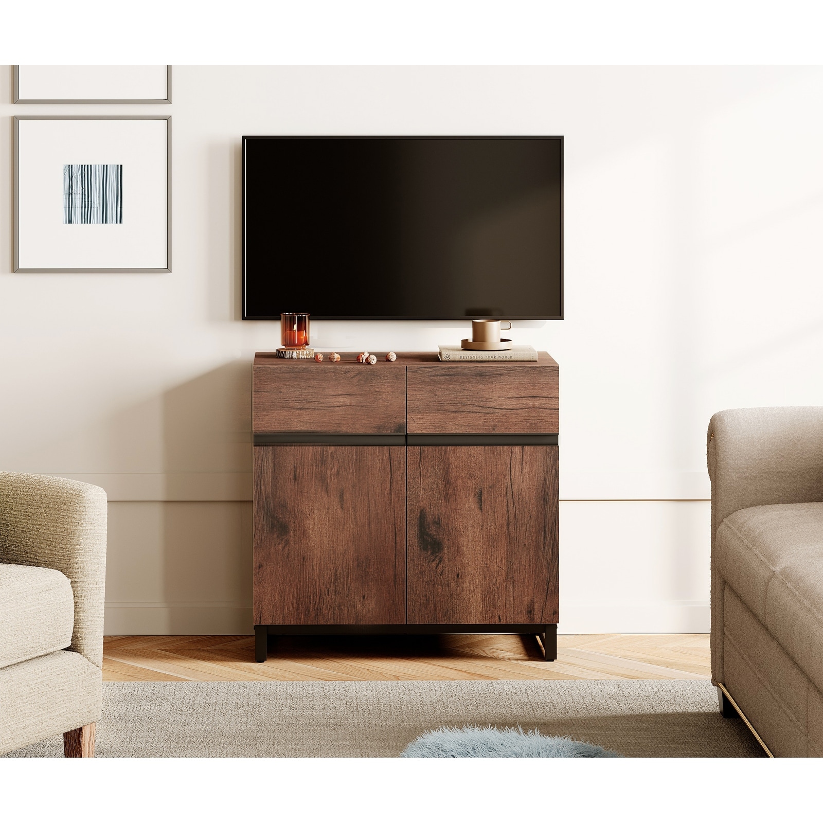 33" TV Stand Media Console with Sliding Barn Door and Storage Shelves