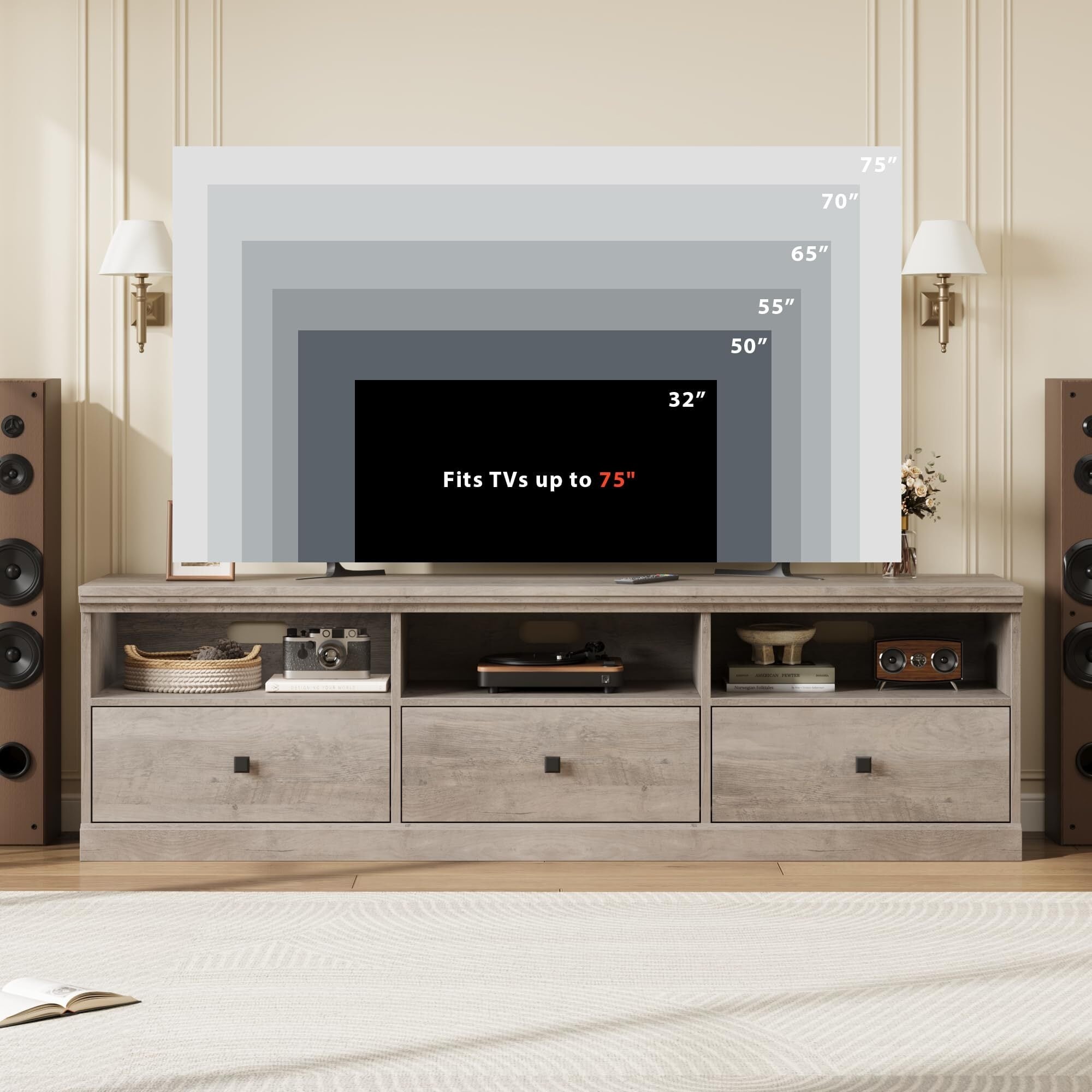 TV Stand for 75 Inch TV, Mid-Century Modern Entertainment Center with Storage Drawer, 70" TV Console