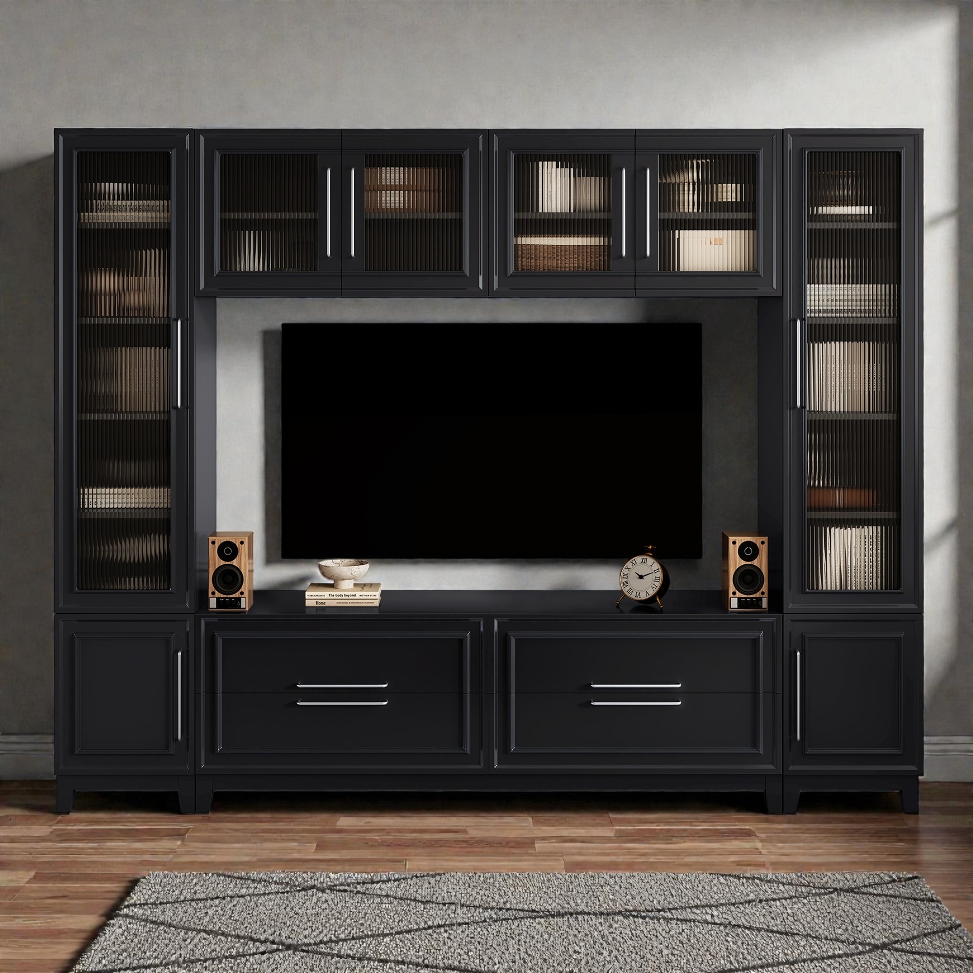 102" Modern Wall Entertainment Center with Fluted Glass Doors, Large TV Stand Media Console for TVs up to 75"