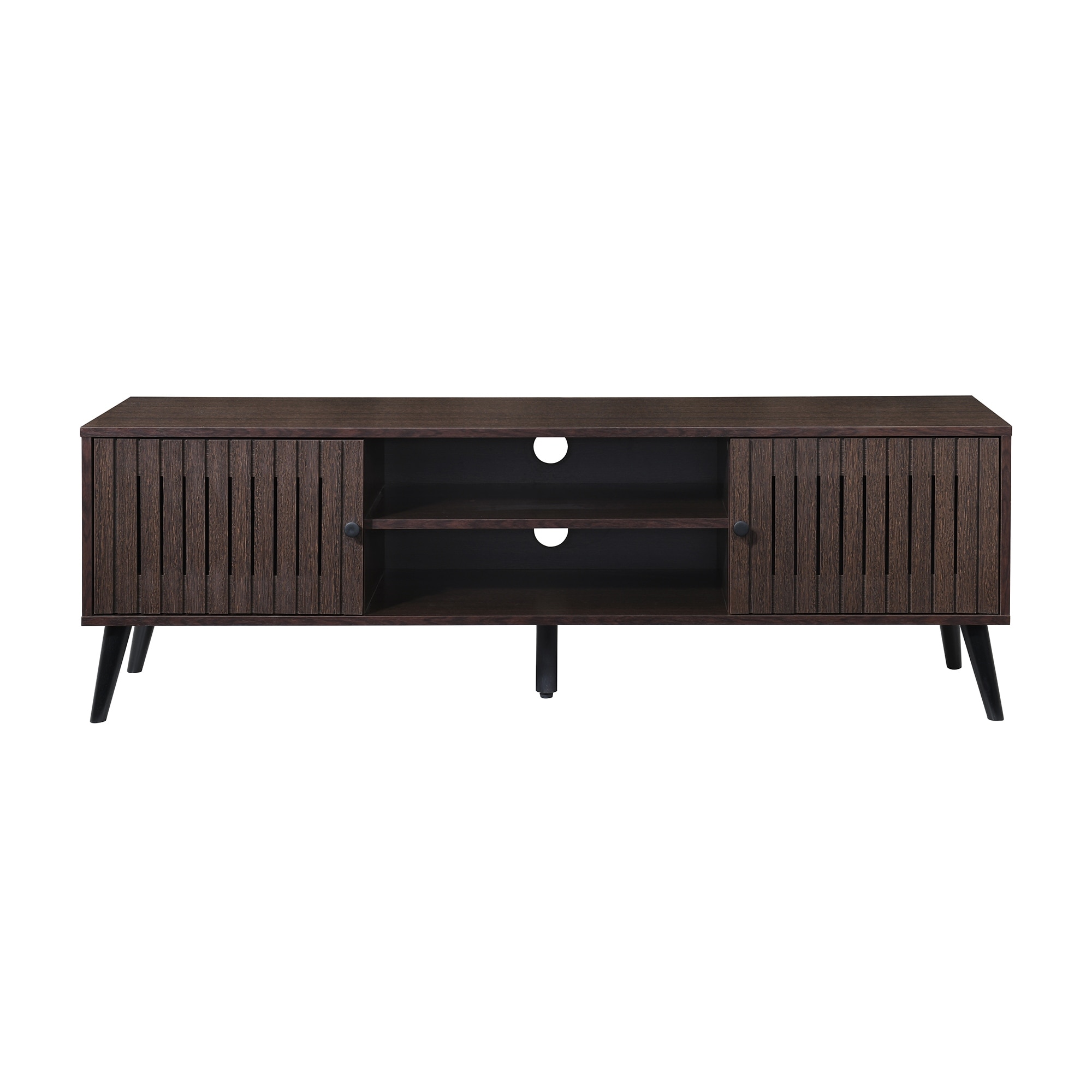 Metal Leg Tv Stand with 2 Door Cabinet and Open Shelf