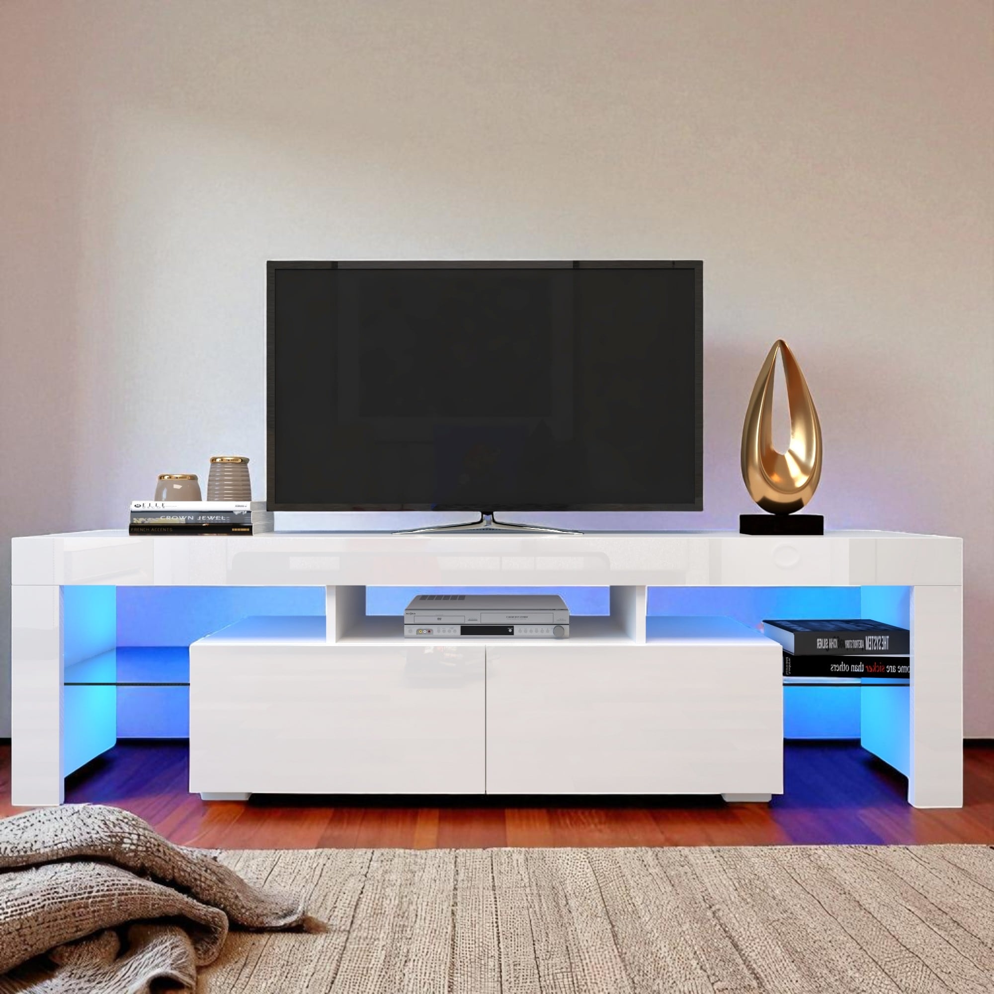 Modern 63" LED TV Stand with Remote Control, 20 Color Light Modes, Large Storage Drawers & Open Shelves for TVs Up to 70 Inch