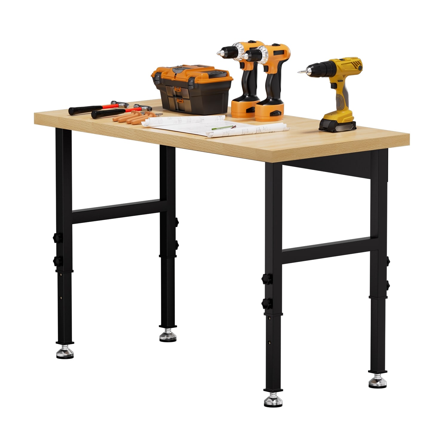 48/60/70” Adjustable Height Heavy-Duty Solid Wood Work Table - N/A