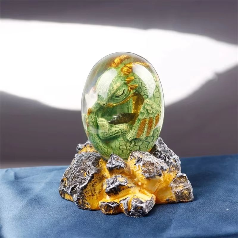 MythicCore Lava Dragon Egg Sculpture Crystal Resin Fantasy Decor light Green