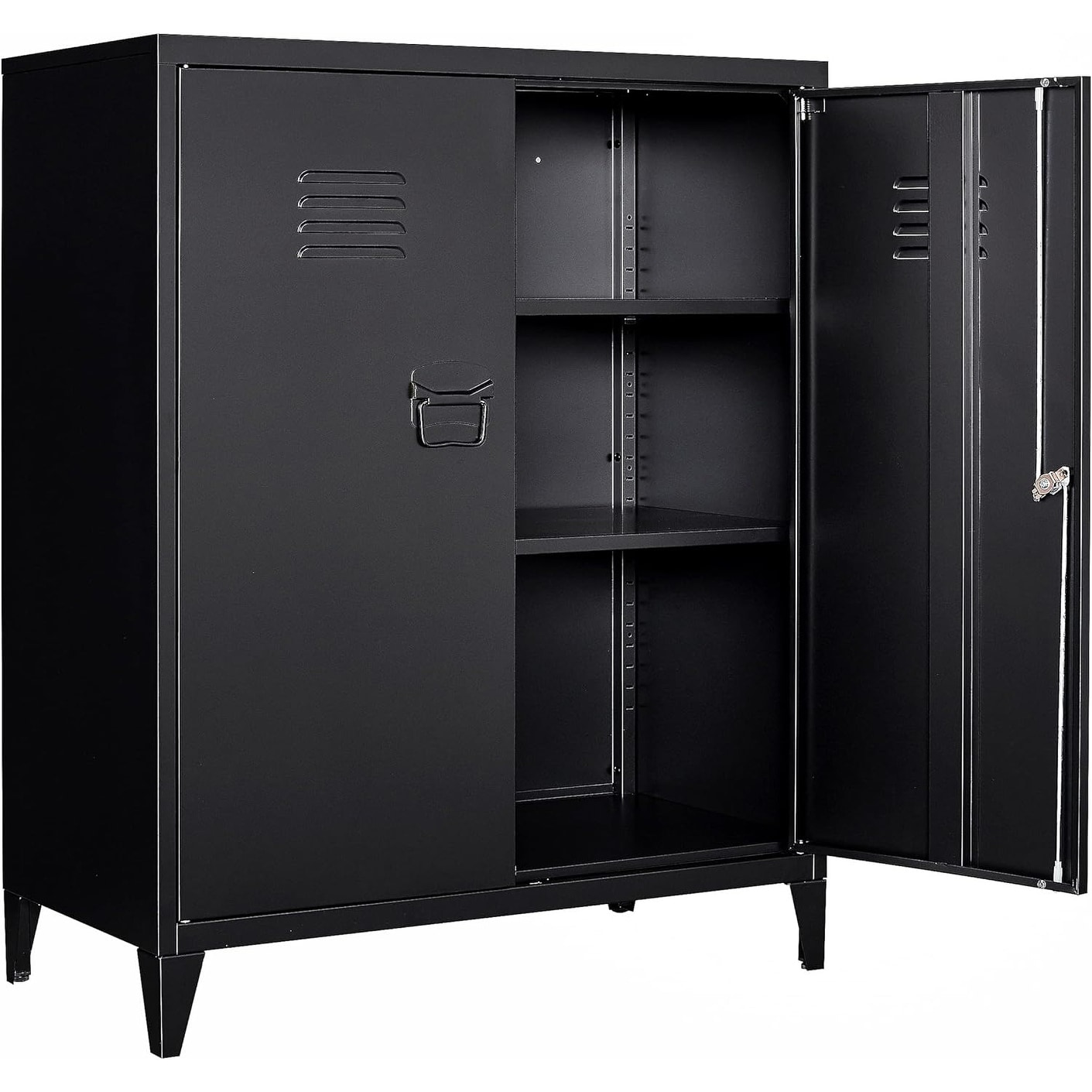 40-Inch Metal Storage Cabinet with Locking Doors and Adjustable Shelves for Home, Office, and Garage