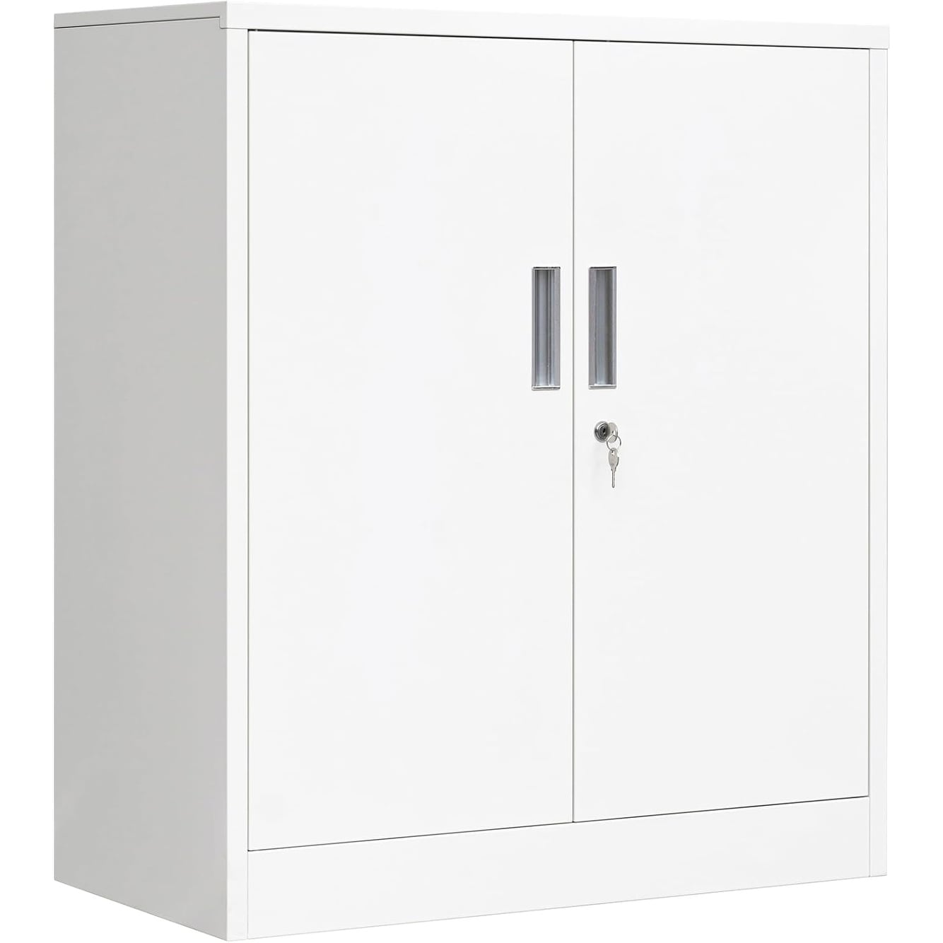 Locking Metal Storage Cabinet with Adjustable Shelves for Office, Garage, Home - White