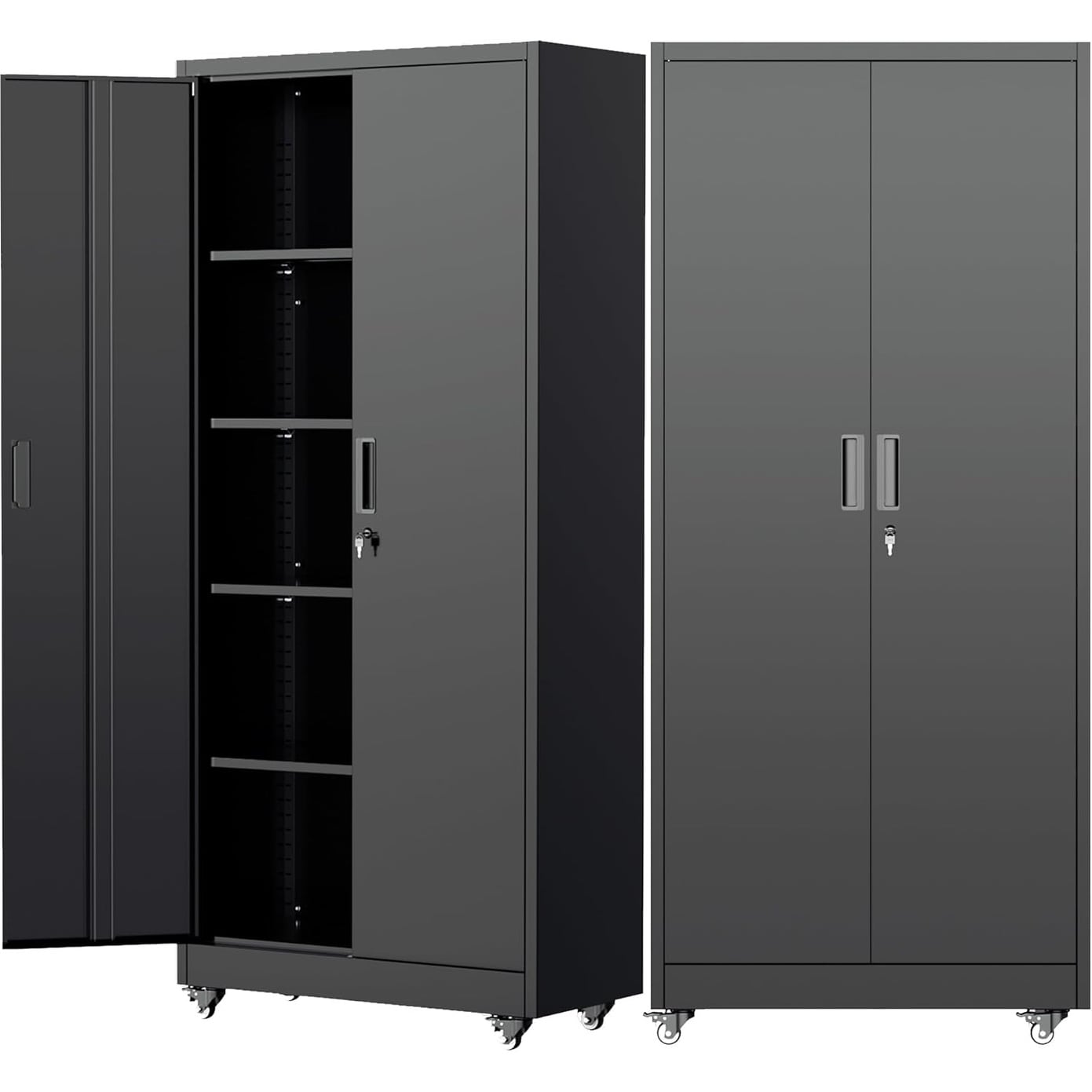 73-Inch Metal Storage Cabinet with Wheels, 4 Adjustable Shelves, Lockable Doors for Garage, Home, Office
