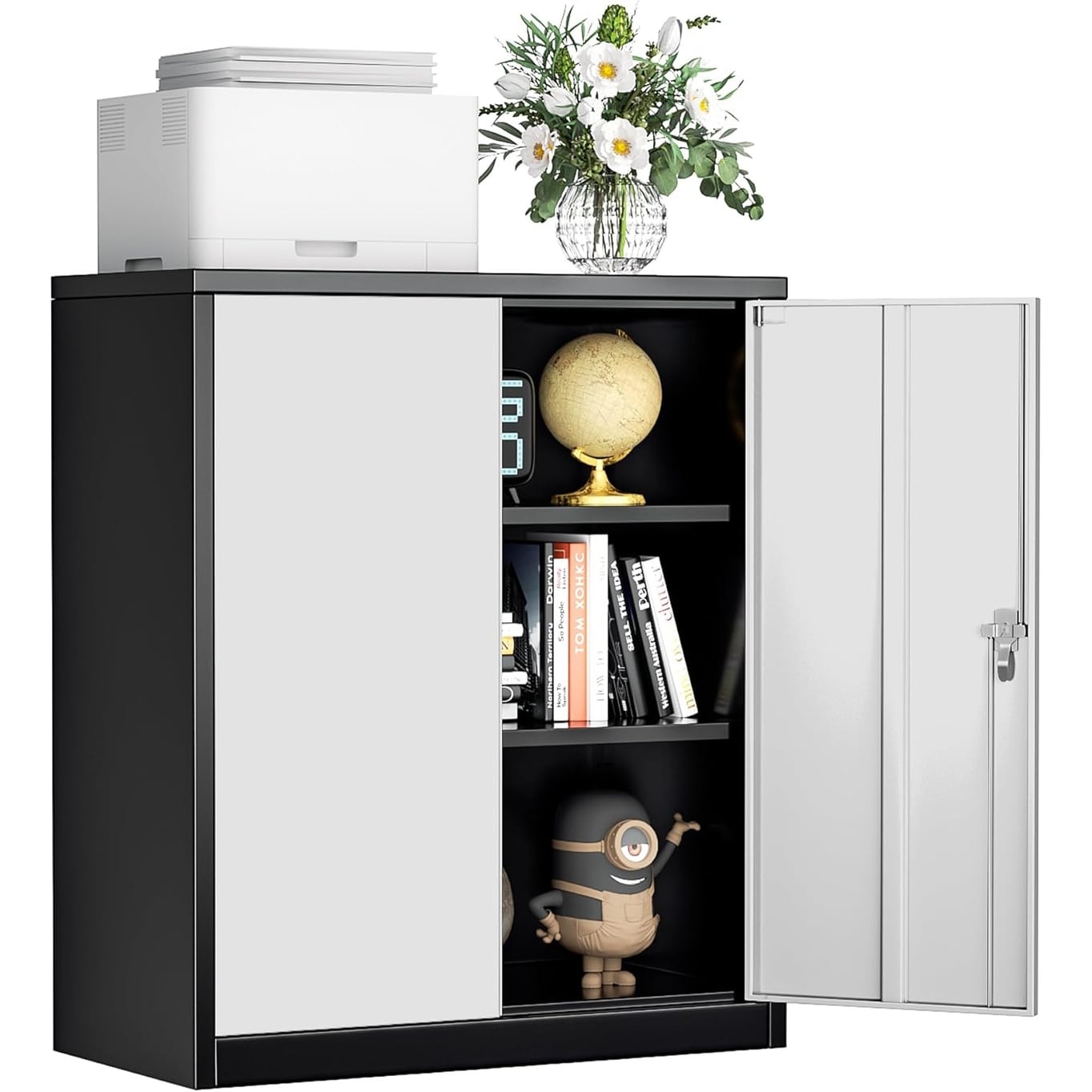 36" Metal Storage Cabinet with Lockable Doors and Adjustable Shelves for Office, Garage, or Kitchen