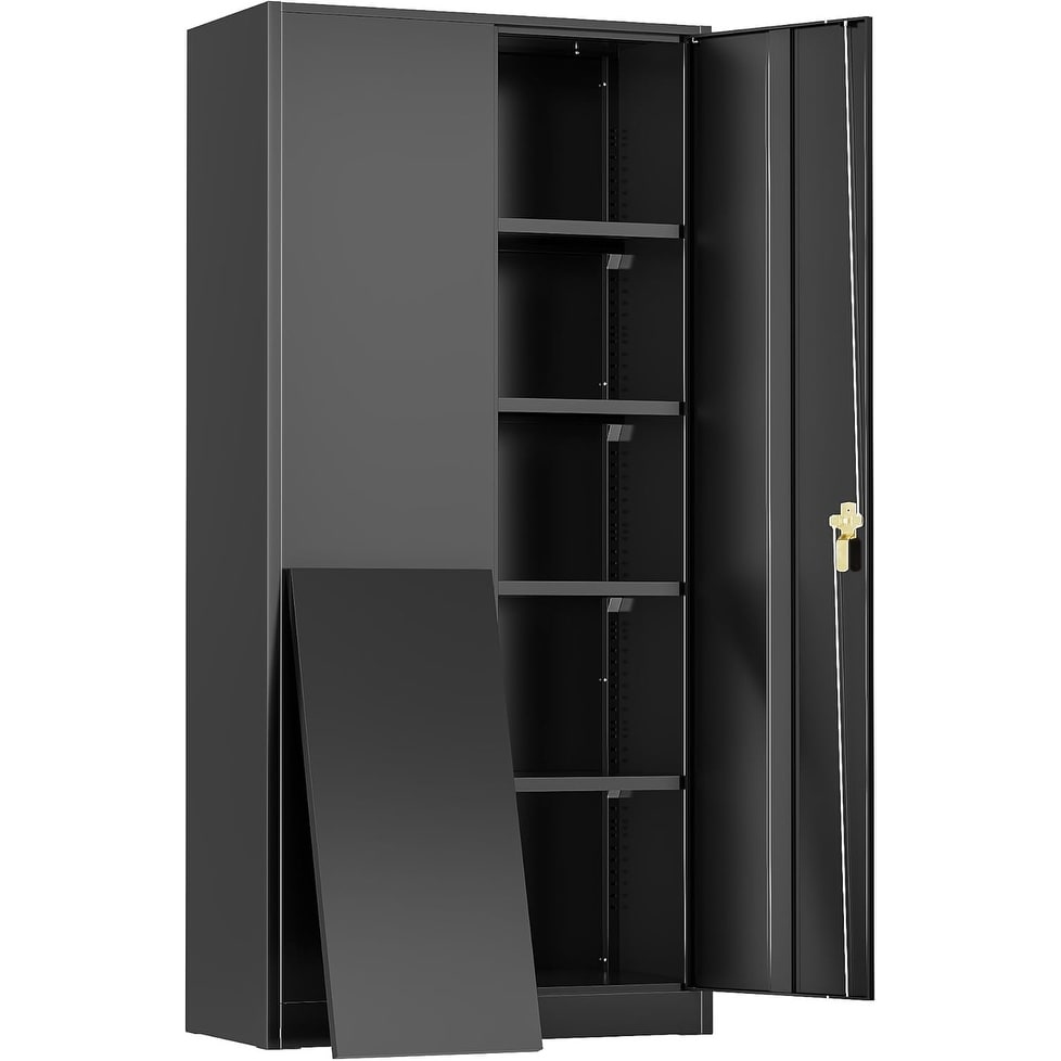Metal Storage Cabinet, 72 inch Black Steel Garage Cabinet with Doors and Adjustable Shelves, Lockable Storage System