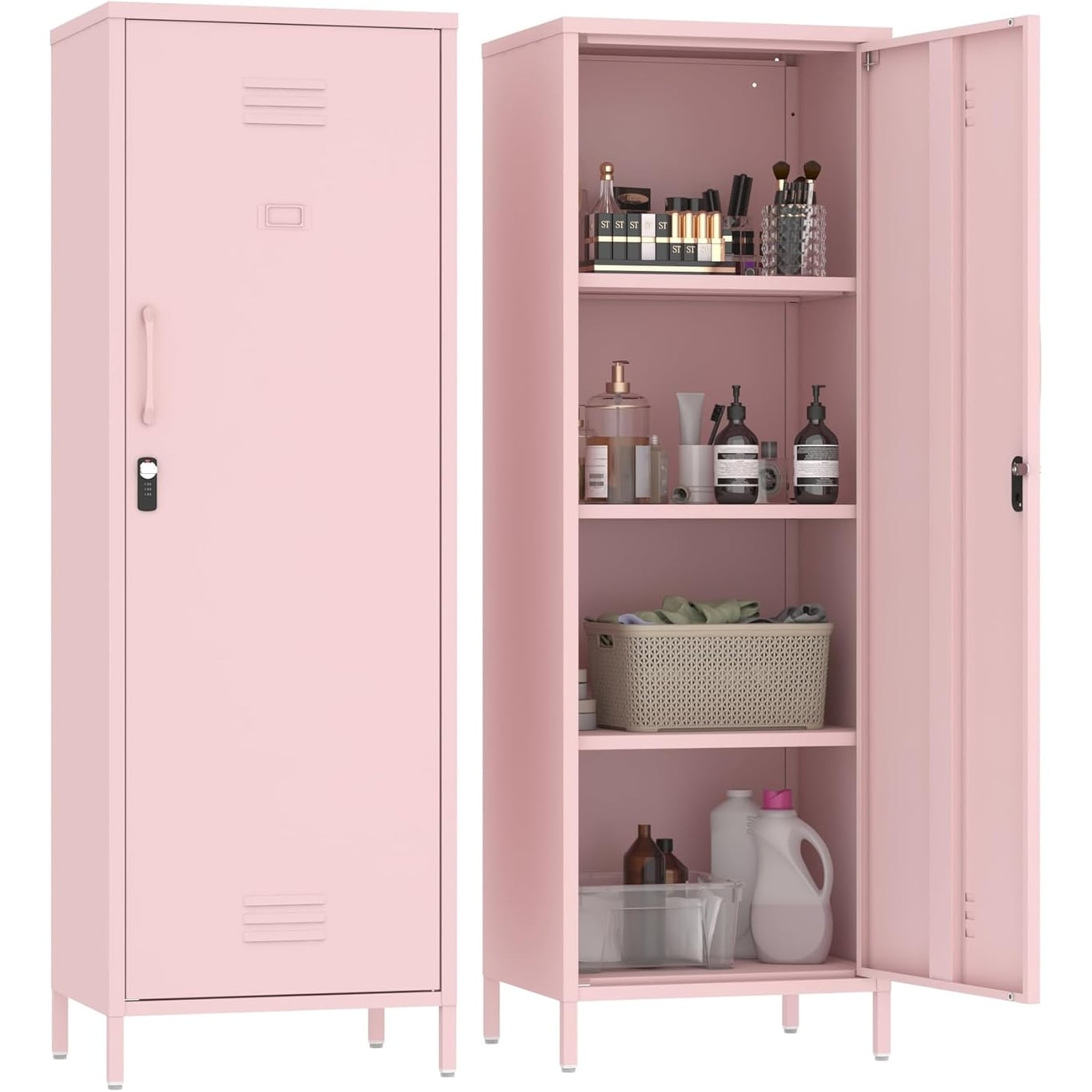 Pink Metal Locker Storage Cabinet with Locking Door and 2 Shelves for Home Office, Garage, Bathroom