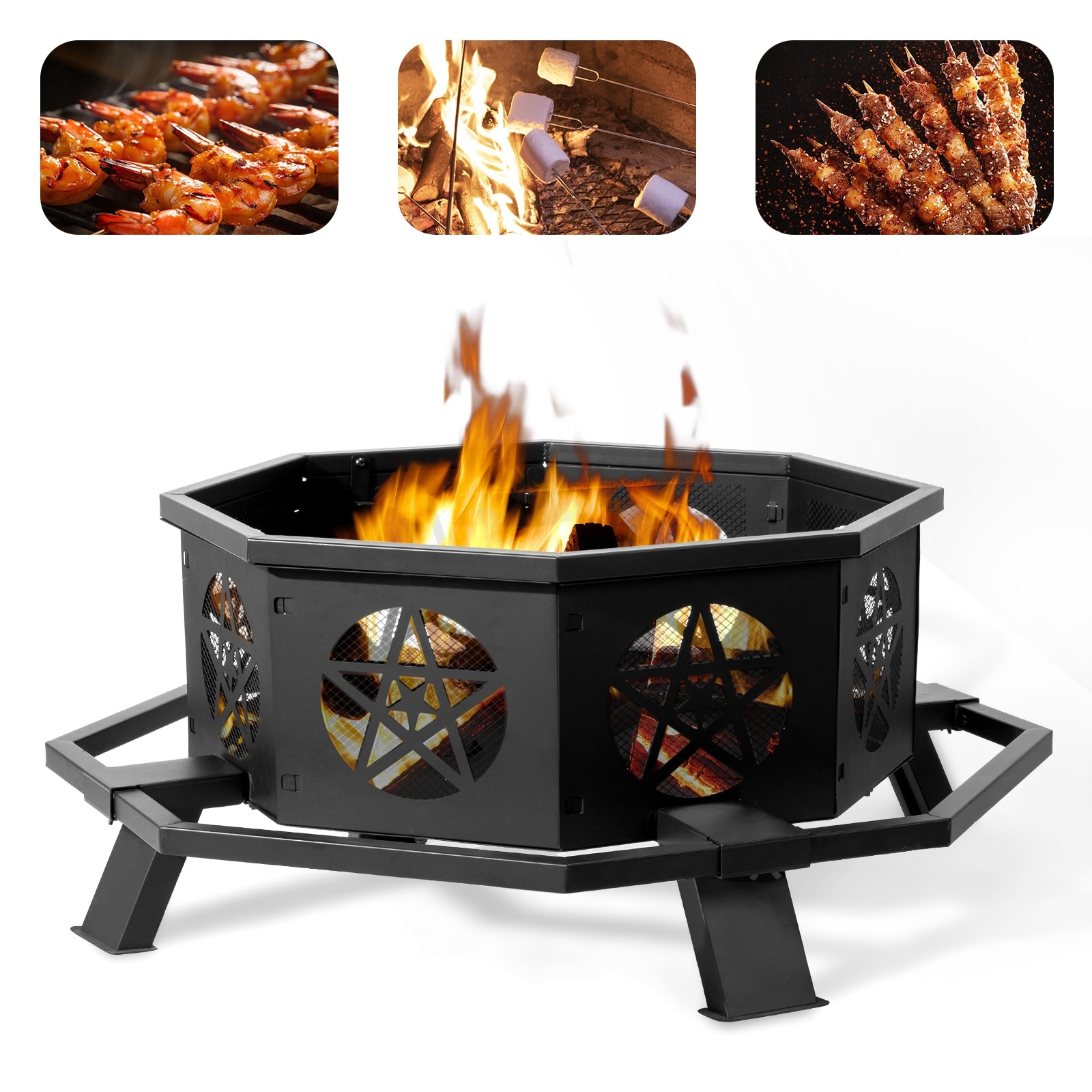 35/43" Octagonal Wood Burning Fire Pit, Fire Bowl, Star Vent, Footrest