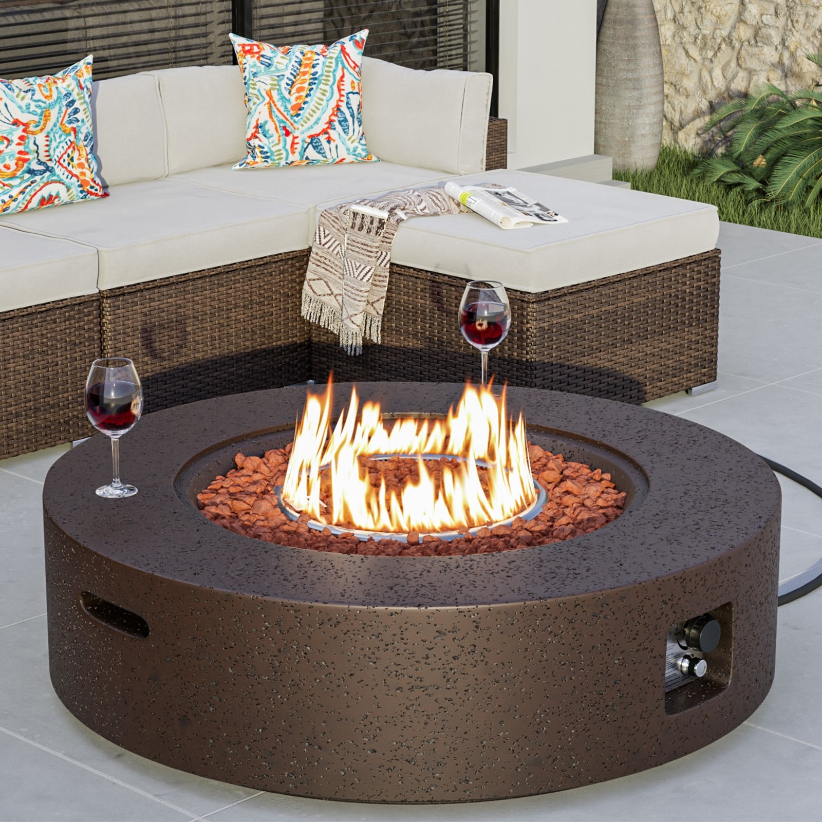 POLESITTER Outdoor 40" Propane Fire Pit Table, 50,000 BTU Concrete Round Gas Fire Pit Table(Tank Outside)