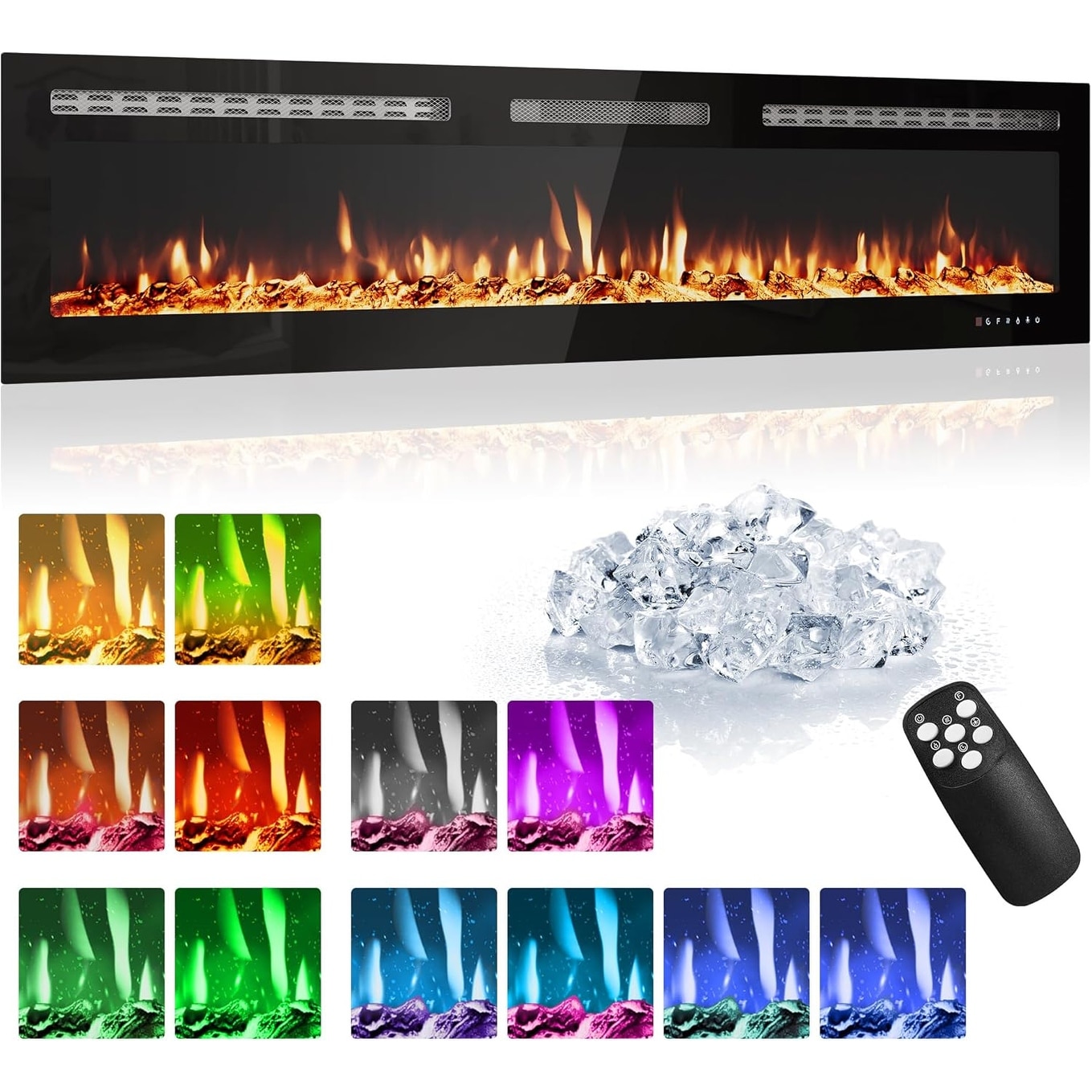 80 Inch Electric Fireplace, Recessed or Wall Mounted, App & Remote, Dual Heat 750/1500W