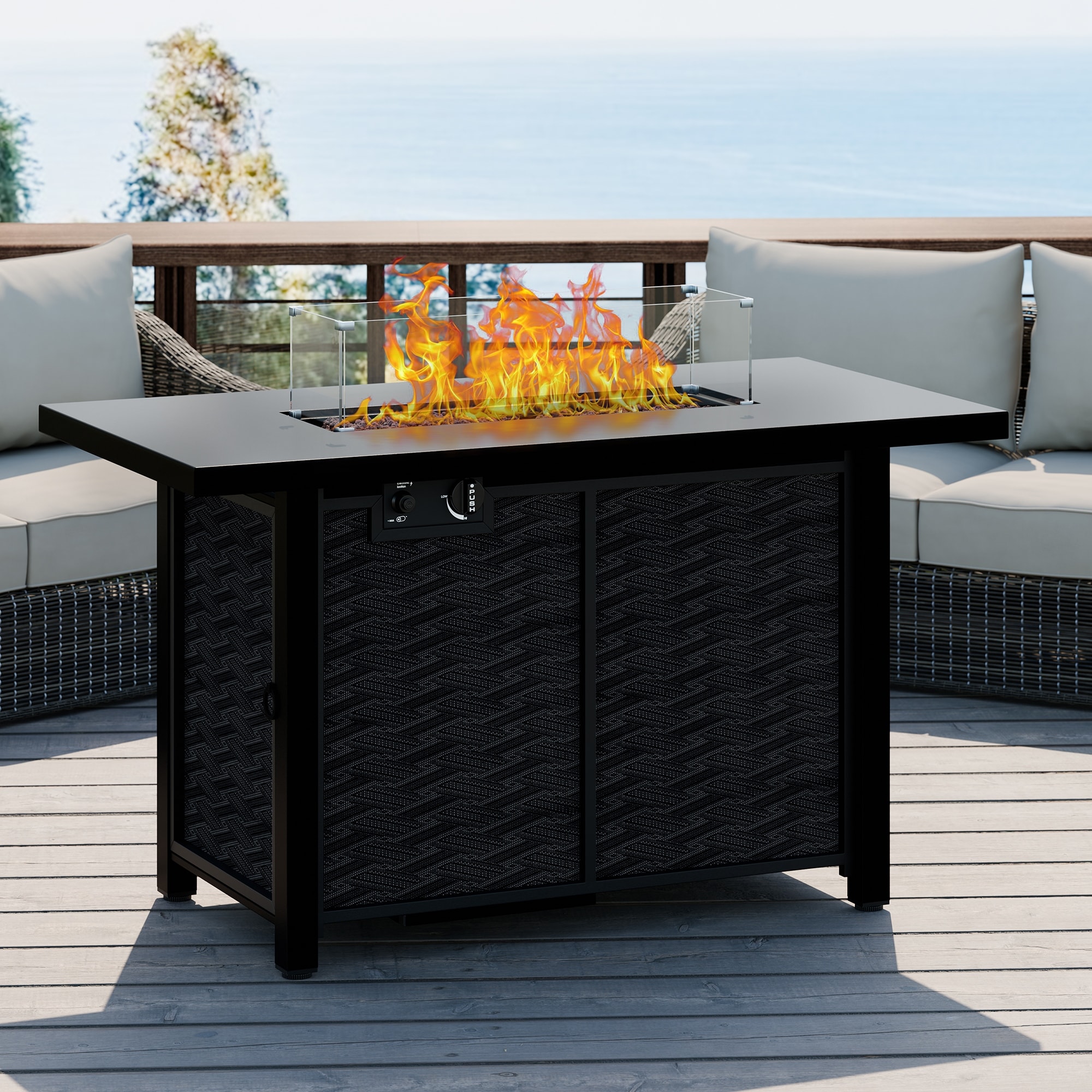 Patio Watcher 50000 BTU 56-inch Rectangle Iron Gas Fire Pit Table,with Tank Cover and Glass Wind Guard