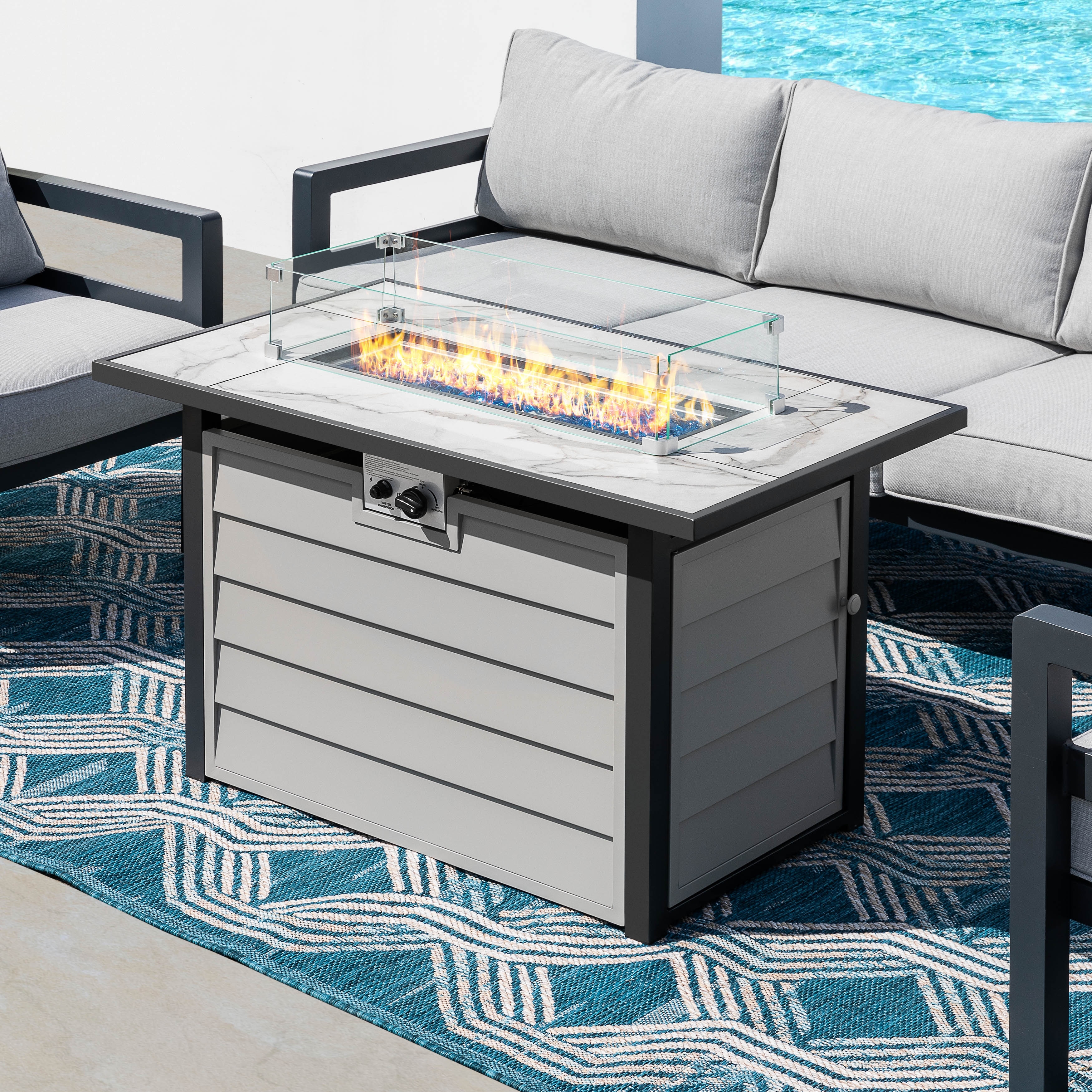 43'' Outdoor Propane Gas Fire Pit Table with Marble Texture Glass Tabletop, Ivory White
