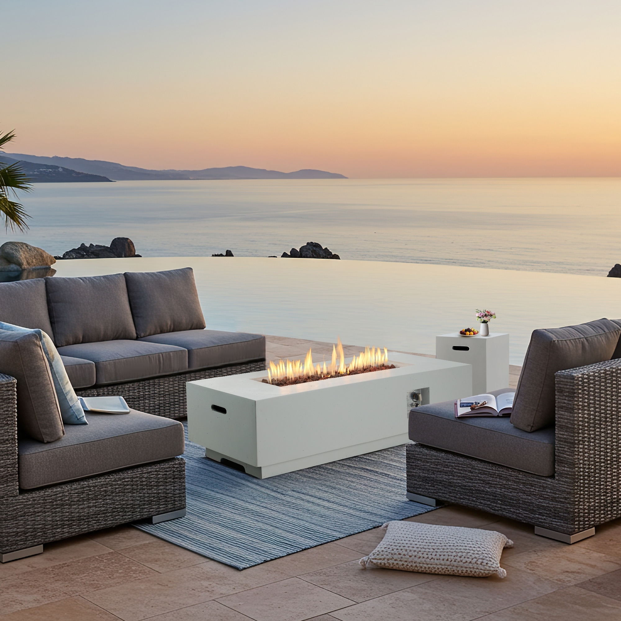 Outdoor Propane Fire Pit Table with Lava Rocks and Hidden Tank Storage