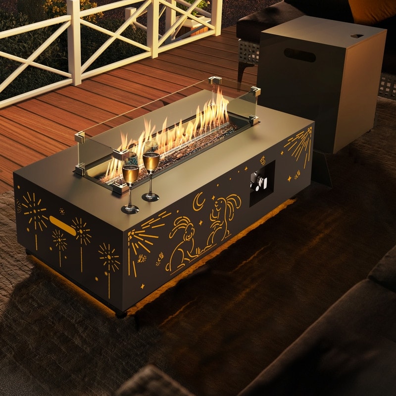 FINCATI 42'' Moon Rabbit-inspired Propane Fire Pit Table, 50,000 BTU Backyard Firepit Natural Gas Fire Table Outdoor