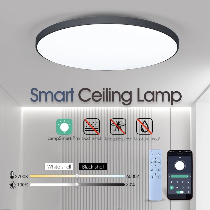 Modern Smart LED Ceiling Lamp Dimmable, APP And Remote Control For Bedroom, Living Room 50w Black Border changeable