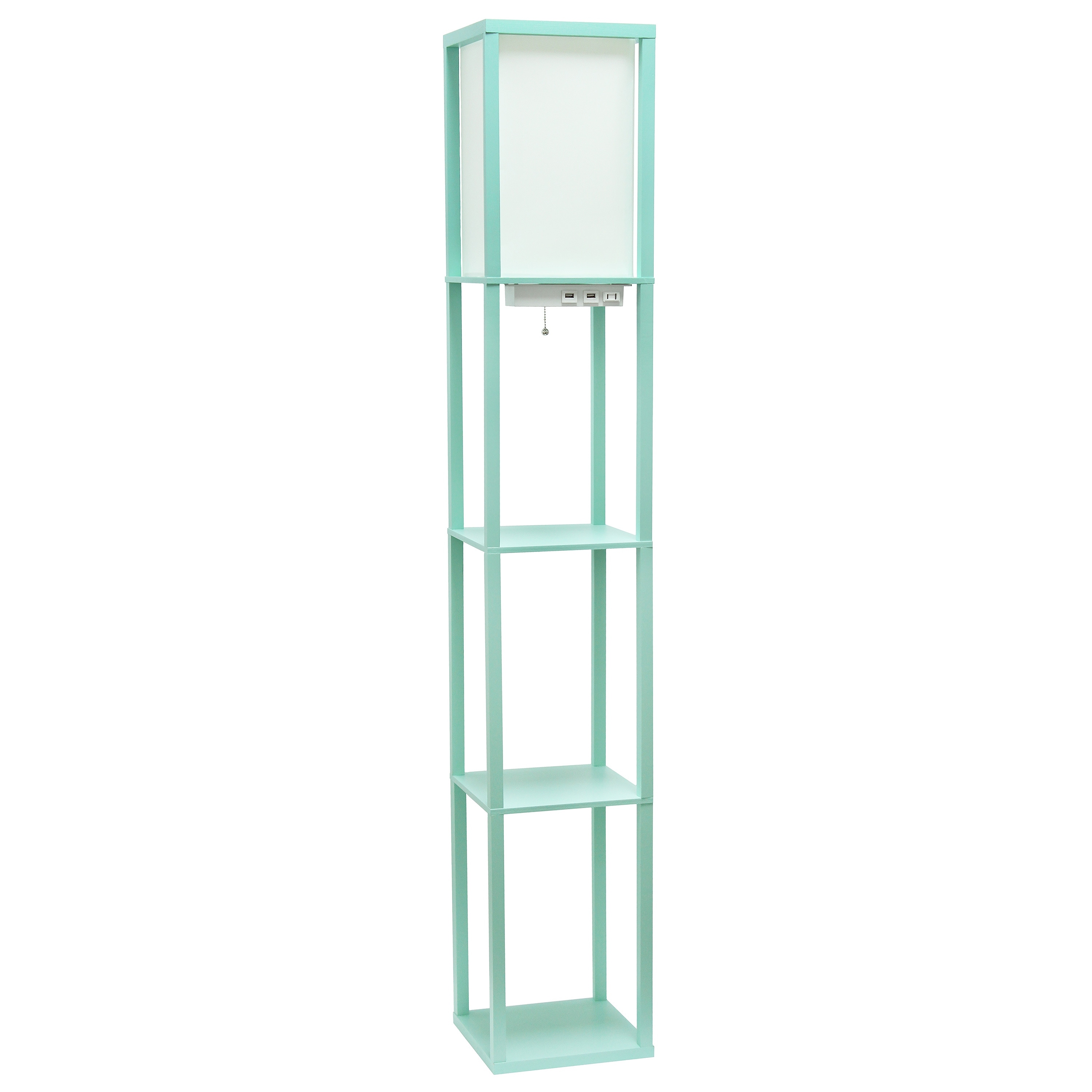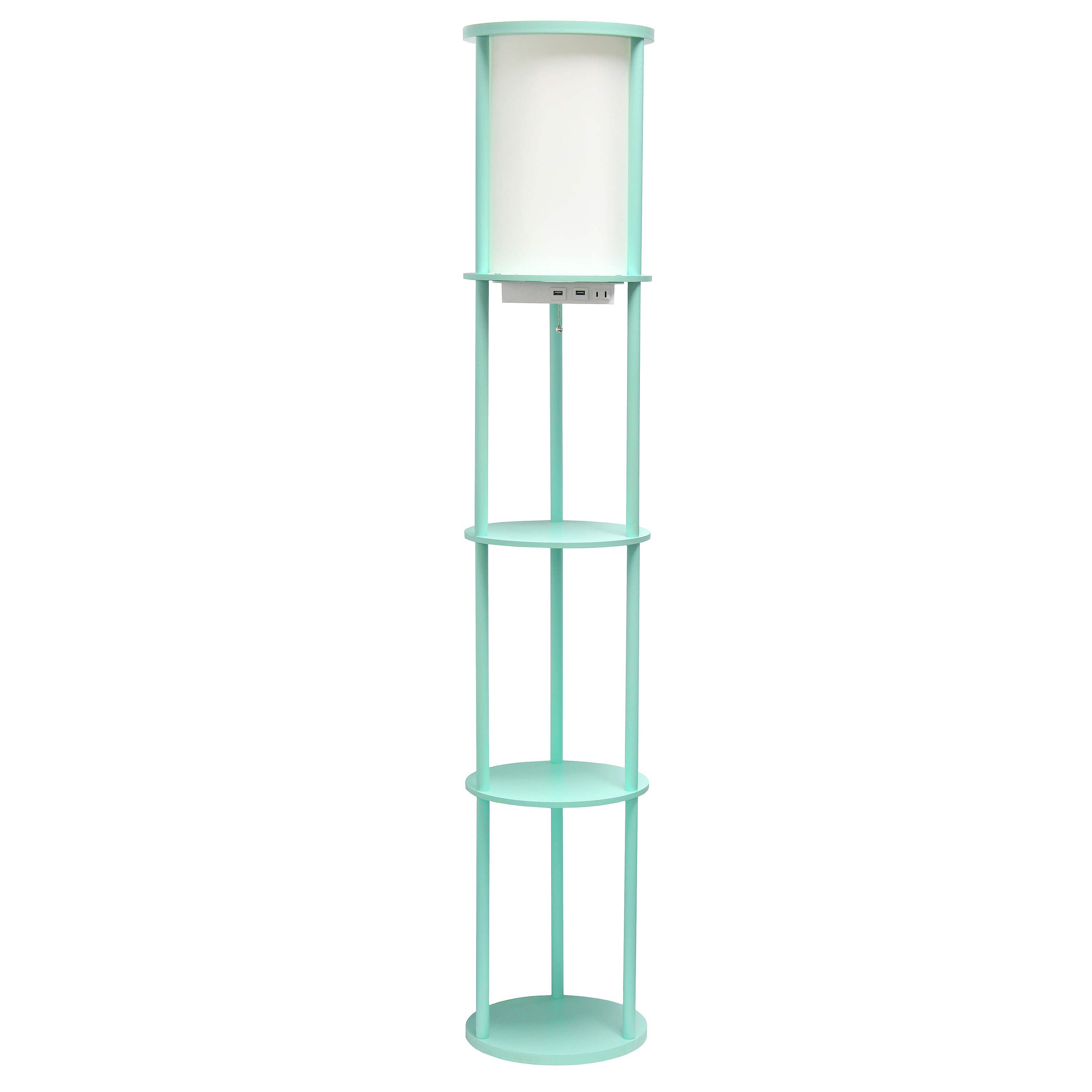 Creekwood Home Classix 62.5" Aqua 3-Tier Storage Floor Lamp with Charging Ports, Outlet & White Linen Shade