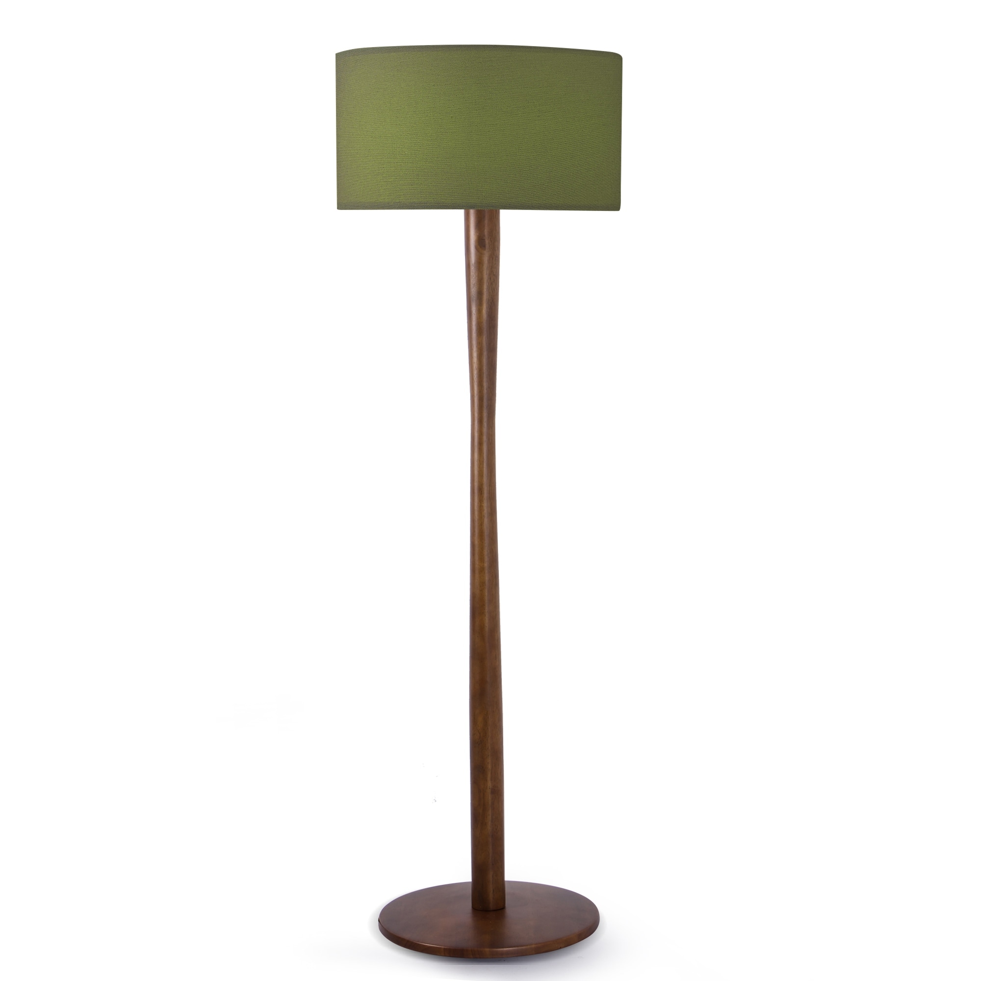 61 in. Retro Standing Floor Lamp with Rubberwood Base and Linen KD Lampshade for Bedroom, Living Room