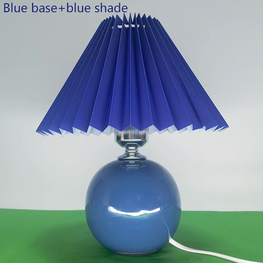 Vintage Pleated Table Lamp With Ceramic Base And LED Tricolor Bulb au blue