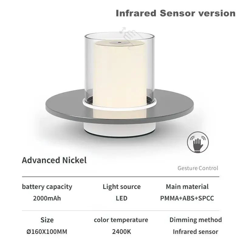 Modern Led Induction Candle Light, Rechargeable Dimmable Atmosphere Desk Lamp For Romantic Decors silver Infrared Version
