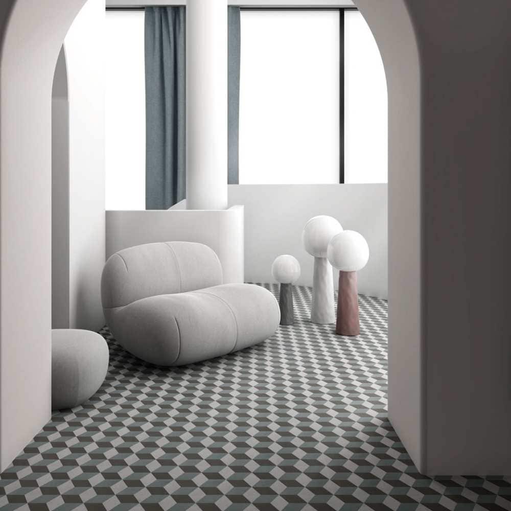 Prism 9x9 Grey Matte 3D Geometric Porcelain Tile - Floor, Wall, Backsplash