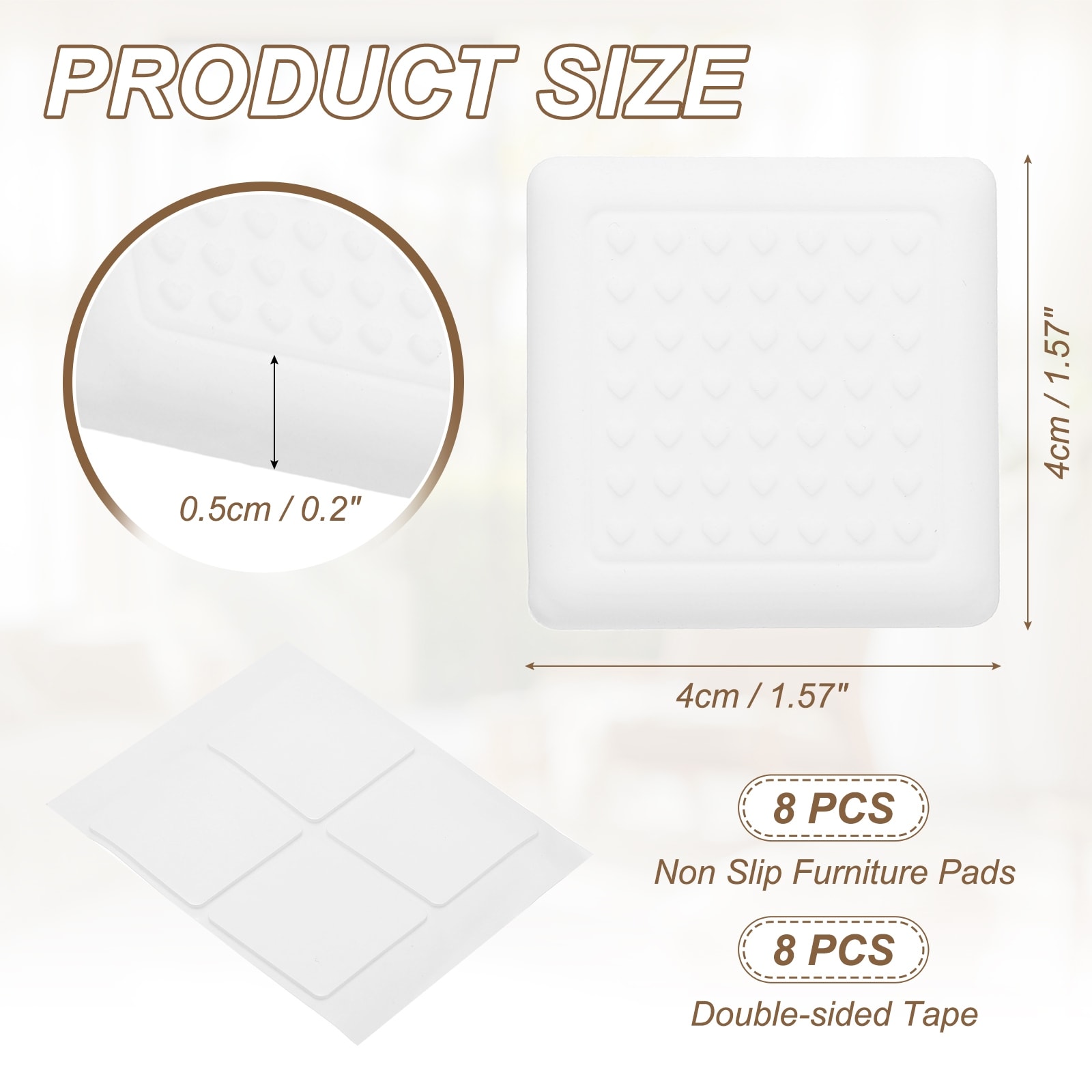 1.2 Inch Non Slip Furniture Pads, 8 Pcs Square Rubber Caster Cups, White