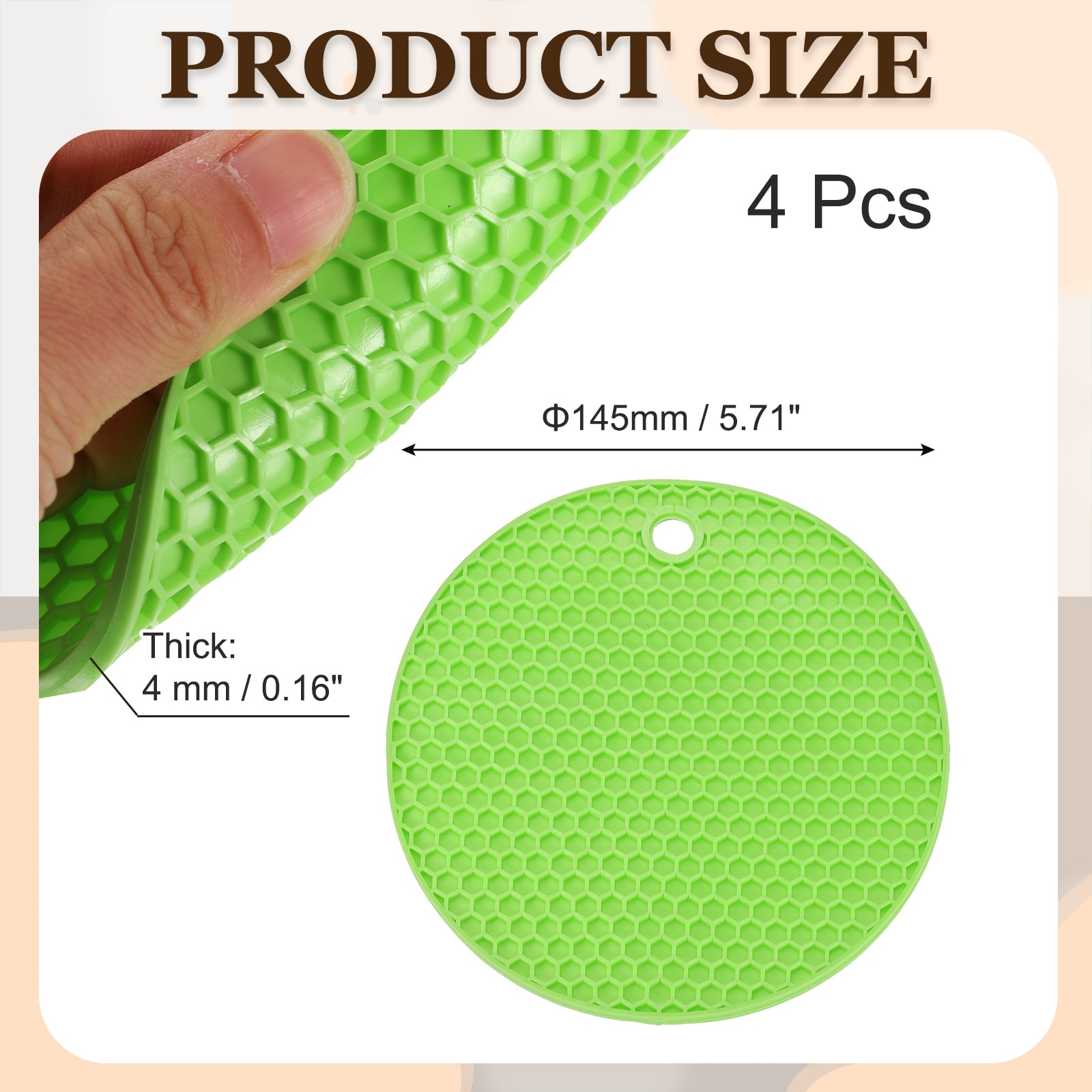 4 Pcs 6 Inch Silicone Trivets Mat Pot Holder Round Hot Pad Mat Black